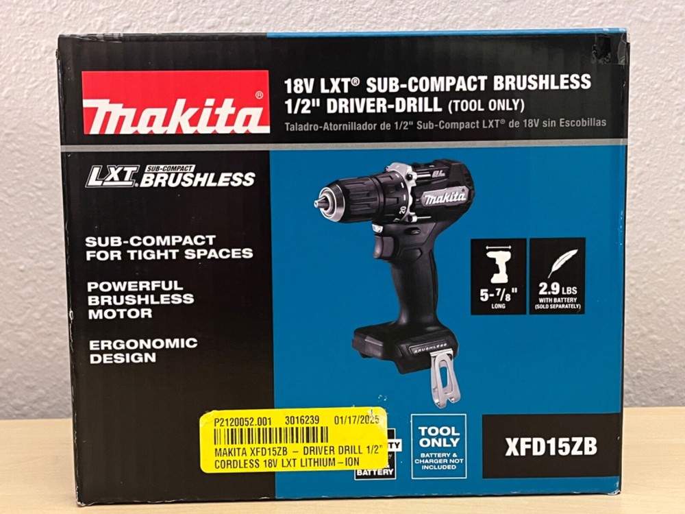 -New Makita 18V XFD15ZB Cordless 1/2" Battery Black Compact Drill Driver 18 Volt- BRAND NEW IN ORIGINAL PACKAGING - SHIPS OUT IMMEDIATELY - REPUTABLE SELLER : CHECK MY FEEDBACK!!! Please reference pictures for description From smoke free / pet free home YOU PICK THE SHIPPING OPTION. GROUND ADVANTAGE IS THE CHEAPEST IF YOU REQUIRE EXPEDITED SHIPPING OR EXTRA PACKAGING PLEASE SELECT ONE OF THE LISTED EXPEDITED SHIPPING SERVICES. THANK YOU!