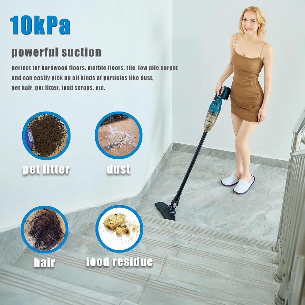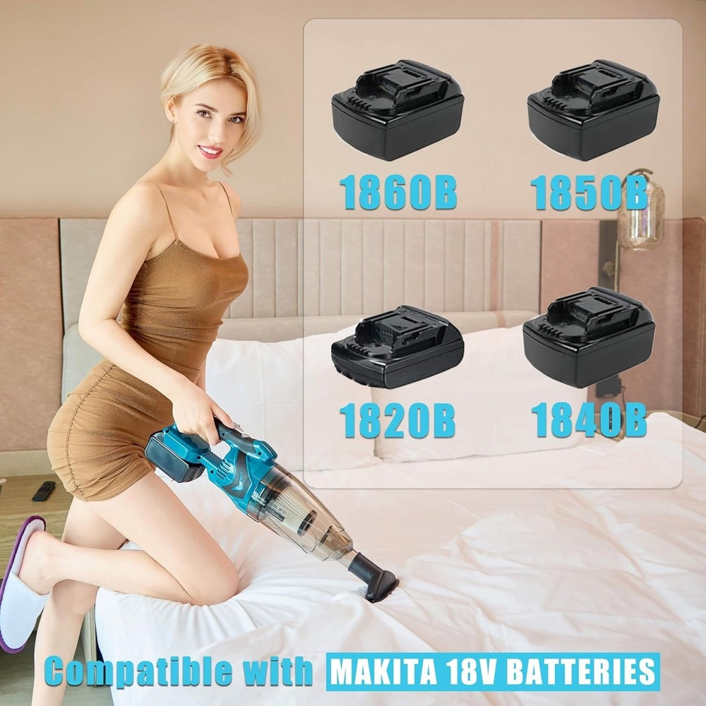 Perfect Compatible with Makita Battery: Dapted to Makita 18v battery,This pet hair remover handheld vacuum cleaner is perfect for when your Makita tool is broken or missing but the battery is good.Tool only.No battery 4 Muti-Functional nozzles: This package come with 4 different nozzles,2 extension tubes and brushes. It’s your best assistant when you deal with different situation. You can easily suck out dust, pet hair, sand, food debris even the dirt hide in the sofa.The extension tube can reach the hard-to-reach area in your home or car.In addition, we give you a free heap filter to keep you clean without any worries Hight performance Motor & High Speed: This pet hair eraser wireless household upright vacuum cleaner equipped with 140W high-power motor providing 10KPa super suction. The 600ml large dust cup can accommodate more garbage and pet hair at one time, making cleaning easier and happier.No Missing Corners All-Round Cleaning, No Missing Corners: Light as a feather,hard as a stone,Even if you need to use this vacuum cleaner to clean a high place, you won't feel tired by raising your hands.Durable use in wet/dry conditions.Furthermore, this couch vacuum wireless household canister vacuum cleaner come with low-voltage protection to protect your battery. The machine will automatically shut down when your battery is about to drain The package box contains: 1 x Vacuum Cleaner Tool; 2 x HEPA Filter; 1 x Floor Brush; 1 x Small Circular Brush; 1 x 2-in-1 Brush; 1 x Sofa Brush; 2 x Extension Tubes.This handheld vacuum cleaner just only tool,Not included battery