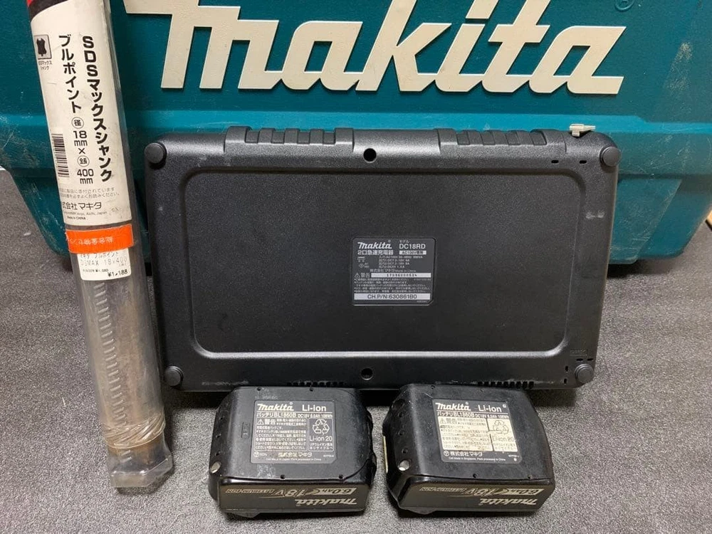 Chuck Type: SDS Max Power Source: Battery Battery Included: Yes custom bundle: Yes Voltage: 36 V UPC: Does not apply gtin13: Does not apply Type: Rotary Hammer Drill set includes: Rotary Hammer Drill, 2 Batteries, Charger, Case Model: HR400D Brand: MAKITA battery capacity: 6.0 Ah Country of Origin: Japan Color: Green MPN: Does not apply
