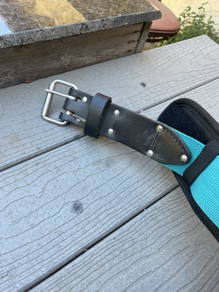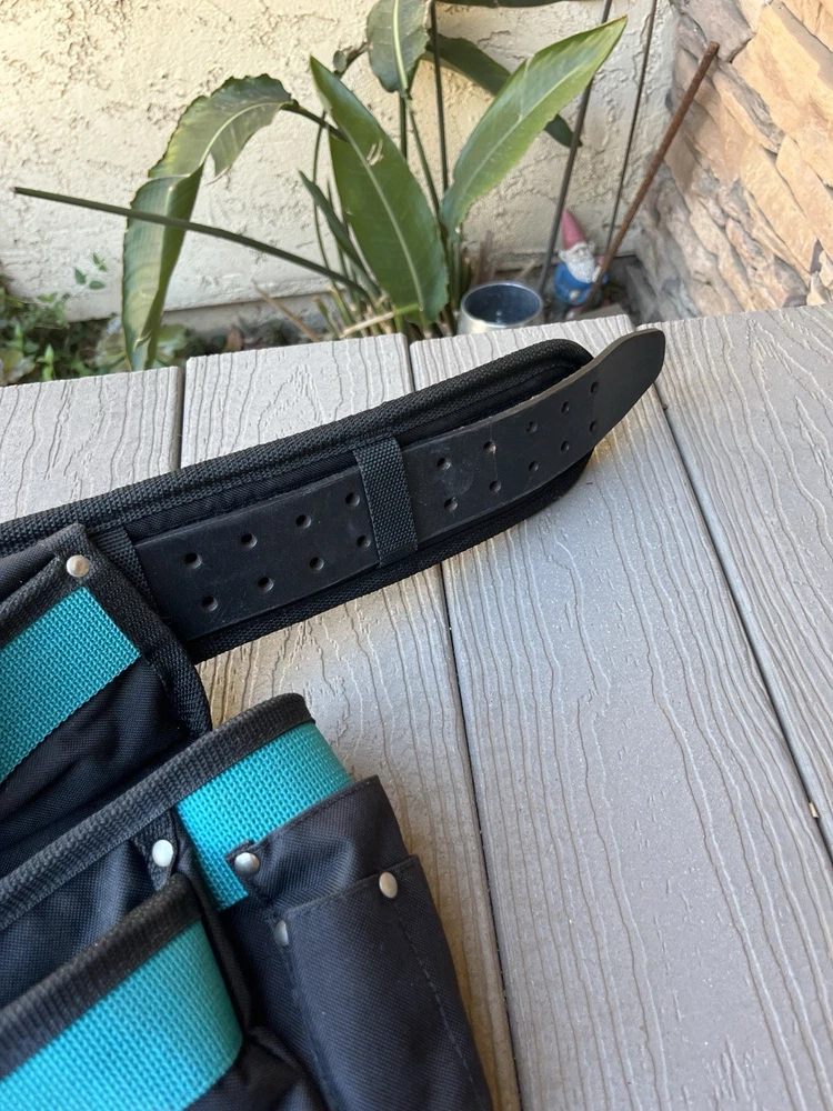 The Makita Ultimate Heavy Weight Tool Belt Set is a high-quality tool belt designed for professionals in the home and garden industry. Made of durable nylon material, this adjustable belt comes in a stylish multicolor design. With one tool belt included in the set, it provides ample storage space for all your tools while allowing for a comfortable and secure fit. Perfect for those who value both functionality and style in their tool storage solution. Overall length of belt is 54” preowned lightly used see photos