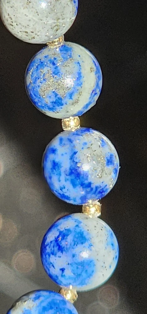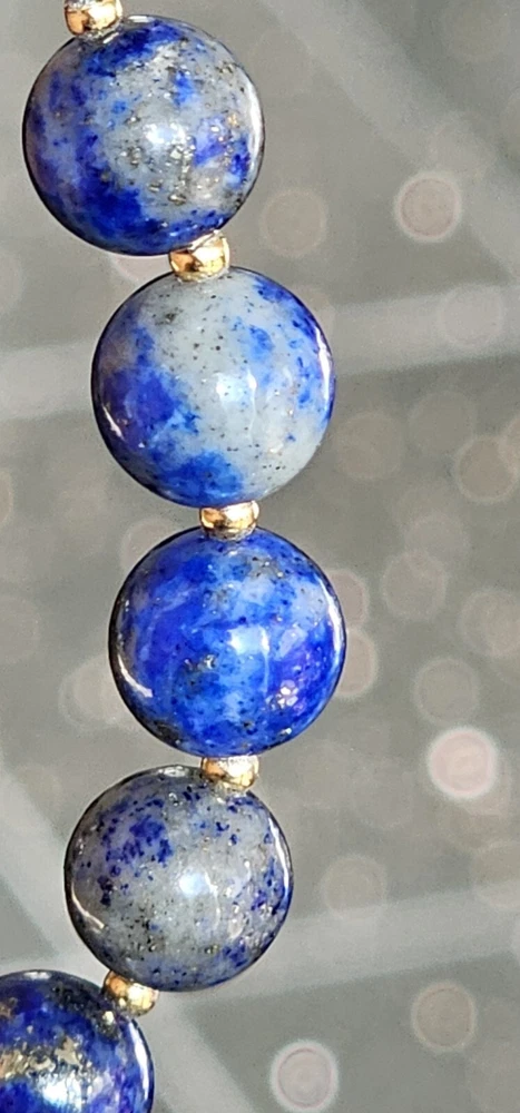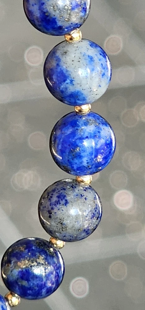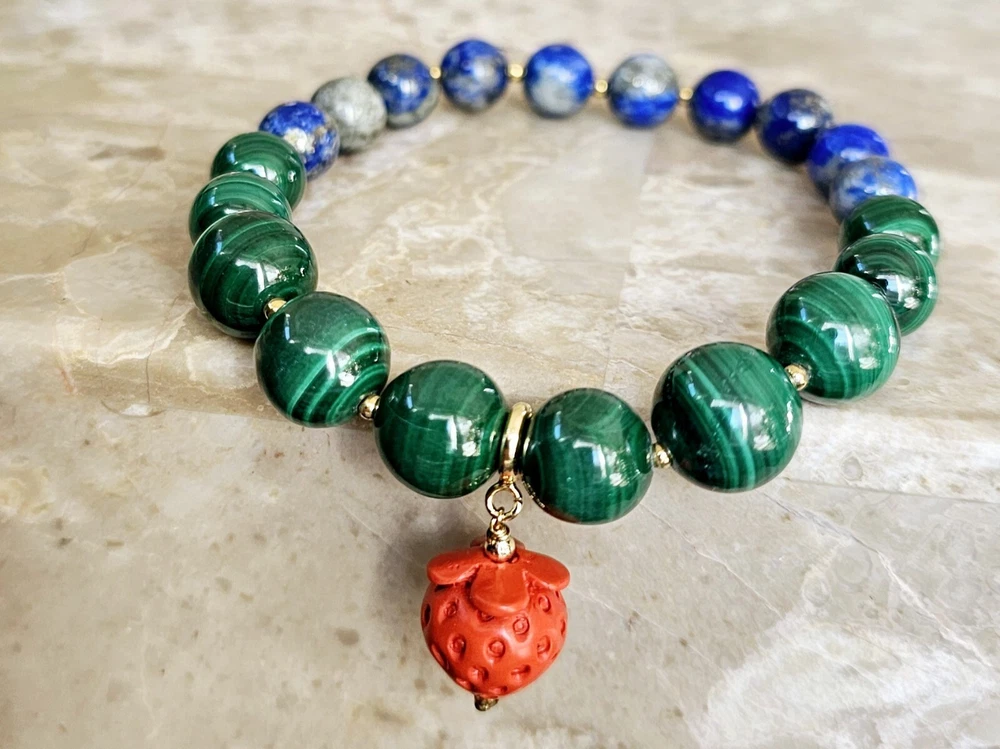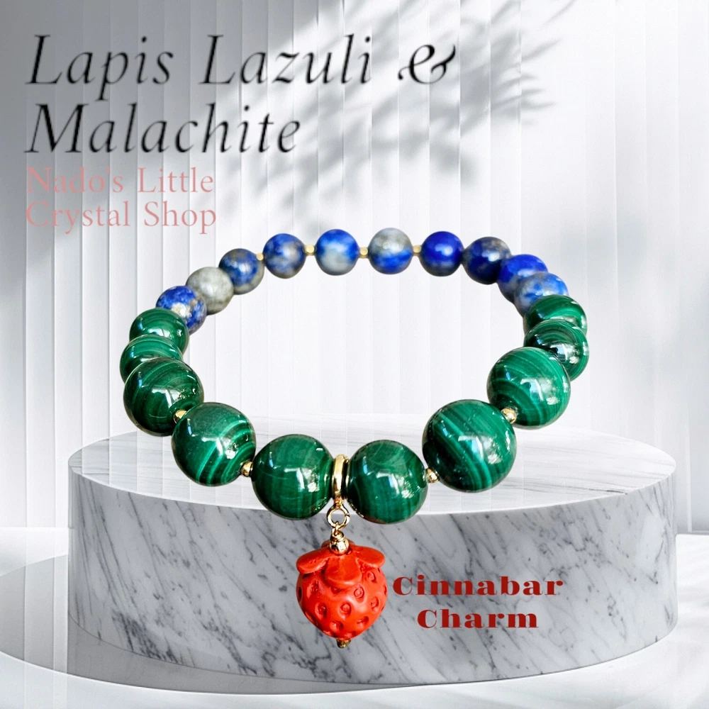 Widely used in therapies, energy healing, and Chakra balancing, Malachite crystal healing properties include regulating the menstrual cycle and cramps, easing labor pain, dealing with depression and anxiety, and drawing out the negative energies from the body. This beautiful beaded bracelet features natural, green malachite crystals with excellent cut grade and eye-clean clarity. The crystals are round in shape and range from 8.5mm to 12mm in length and are accented by gold plated spacers. The adjustable bracelet measures 8 inches in length. Lapis Lazuli is a powerful vibrating stone that stimulates the Third Eye chakra for greater enlightenment and spiritual wisdom. It is believed to intensify the connection with the spirit realm, aiding the user in the development of their psychic abilities. It is often used to remove negative thoughts and anger, encouraging harmony and balance for greater happiness and well-being. Combination together enhances healing, transformation, wisdom, friendship, goodwill, harmony, strength, and protection. The design of this bracelet is inspired by nature and brings awareness to the healing properties of crystals. It is perfect for those who appreciate the beauty of natural materials and want to add a touch of elegance to their style.