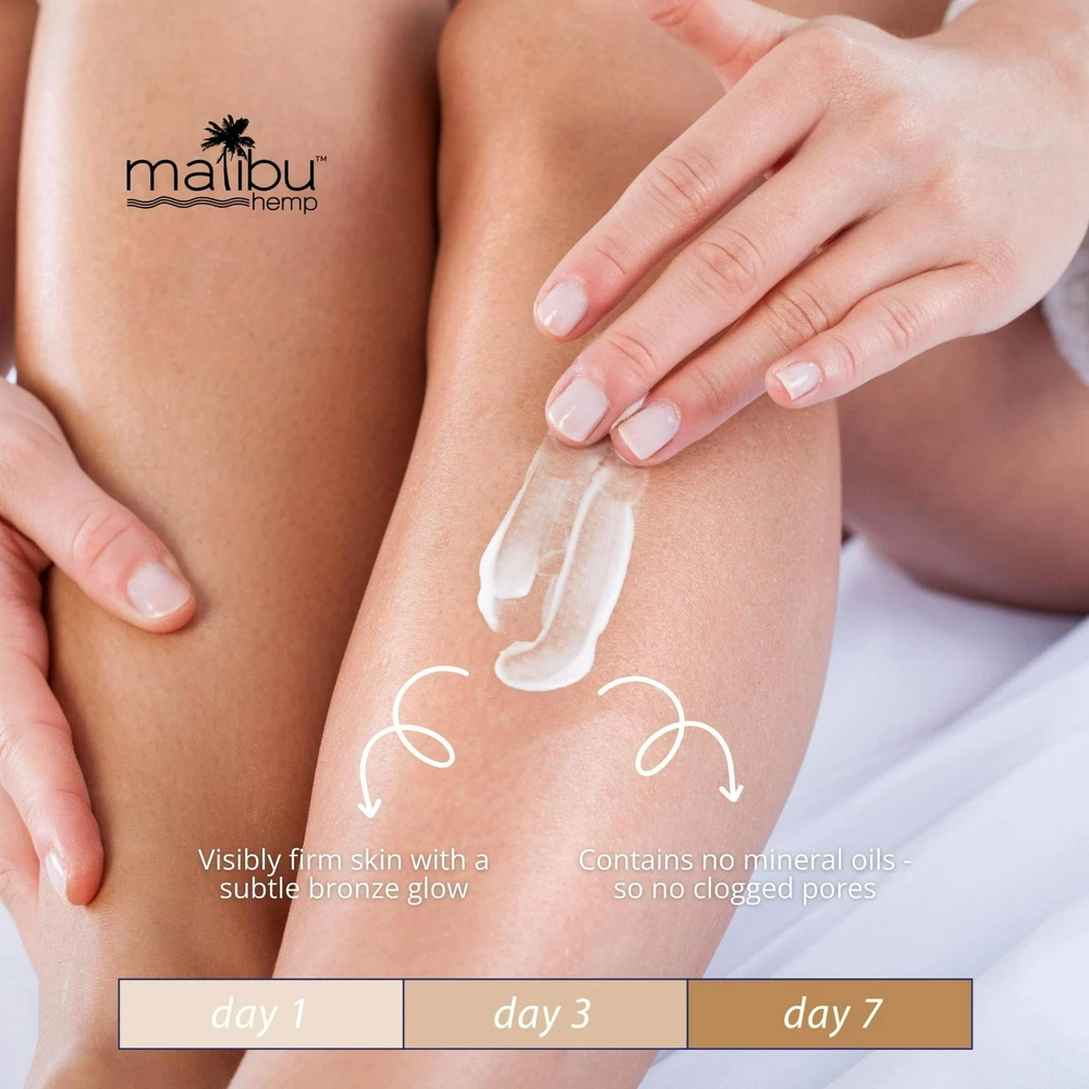 About this item Product details Elevate Your Radiance with Malibu Tan's Hemp Golden Glow Bronzing Moisturizer with Skin Firming. Infused with CoQ10, this luxurious formula indulges your normal skin in deep nourishment. Experience the transformative power of hemp, as this moisturizer is expertly crafted to enhance skin's smoothness while reducing the appearance of fine lines and wrinkles. With each application, witness your skin take on a subtle, golden glow that intensifies beautifully over time. Embrace the opulence of Malibu Tan's Hemp Golden Glow Lotion, elegantly presented in an 18-oz pump dispenser for effortless indulgence. Your path to luminous, youthful-looking skin with a flawless golden glow begins here. Firming & bronzing skin moisturizer with nature's finest moisturizer- Hemp! Malibu Tan's Hemp formula naturally hydrates skin Made with CoQ10 complex to condition appearance of skin Reduces the appearance of fine lines and wrinkles for a more youthful look Gives skin a flawless natural golden glow Malibu Tan's bronzing effect intensifies with each application Specifications Skin Care Key Benefits Ultra Moisturizing Scent Banana Strawberry Coconut Body Part Body Brand Malibu Tan Indications Stop Use Indications N/A Health Concern Skin Health Skin Care Concern Wrinkles Dryness Directions Instructions For best results, use daily. Smooth on evenly, allowing to dry before dressing. Wash hands after application. Ingredients Inactive Ingredients N/A Ingredients Water, Propylene Glycol, Coconut (Cocos Nucifera) Oil, Cetearyl Alcohol, Polysorbate 60, Isopropyl Myristate, Cetyl Alcohol, Sorbitan Stearate, Dihydroxyacetone, Glycerin, Stearic Acid, Hempseed (Cannabis Sativa) Oil, Tocopheryl Acetate, Erythrulose, Ubiquinone, Butylene Glycol, PEG-8, Bupleurum Falcatum Extract, Caffeine, Coenzyme A, Sesame (Sesamum Indicum) Oil, Jojoba (Buxus Chinensis) Oil, Sunflower (Helianthus Annuus) Seed Oil, Olive (Olea Europaea) Oil, Tea Tree (Melaleuca Alternifolia) Oil, Green Tea (Camellia Oleifera) Extract, Calendula Officinalis Extract, Cyclomethicone, Dimethicone, Sodium Gluconate, Potassium Sorbate, Diazolidinyl Urea, Methylparaben, Propylparaben, Fragrance, BHT, Citric Acid. Active Ingredients NA