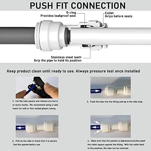 1/4 inch O.D. tube quick connector water line fitting 32ft kit 【FOOD MATERIAL】 Our Refrigerator Ice Maker Water Line Kit is Made of Food Grade Quick Connect Fittings and NSF Certified Tubing, Which Are Widely Used in RO Systems Water Filter Purification. 【SERVICE COMMITMENT】 For Your 100% Satisfaction 30-Day Refund Back Guarantee, 2-YEARS Quality Warranty. We Have Always Been Paying Attention the Quality of Our Refrigerater/Ice Maker line kit. Feel Free to Contact Us at Any Time If You Have Any Dissatisfaction. Drinks Dispense and water filtration system fittings Why Choose Our Refrigerator Ice Maker line Kit? Our Quick Connectors are Made Of Polypropylene,It adopts Push to connect technology, which allows users to connect and Disconnect Quick And Easy Without The Need Of Any Other Tools. It Fits Standard 1/4 inch or 3/8 inch OD Plastic RO Tubing, Copper, CPVC, PEX and PVC Pipe or Hose. Applications Includes Multiple Potable Liquids Such As Reverse Osmosis Drinking Water, Beverage Dispensing, Coffee Machine, RV and Marine, Misting Systems, Ice Makers and Many More. How to Use MALIDA Water Filter Quick Connector? No Additional Tools Required,Just Pop in your 1/4"OD water tubing Push to connect, pushing until it won't go in. To remove, just push in the outer circle on each end and pull right out. You need to make sure the tubing is cut squared to insure no leaks. Our quick connector are reusable,it can be installed without Locking clips. What you will receive? 1/4 inch O.D. RO water tube ,32Ft 1/4 inch O.D. shut off valve quick connector,2pcs; 1/4 inch O.D. T tee quick connector,2pcs; 1/4 inch O.D. Y-Type tee quick connector,2pcs; 1/4 inch O.D. straight union quick connector,2pcs; 1/4 inch O.D. elbow union quick connector,2pcs; 1/4 inch O.D. check valve quick connector,2pcs;