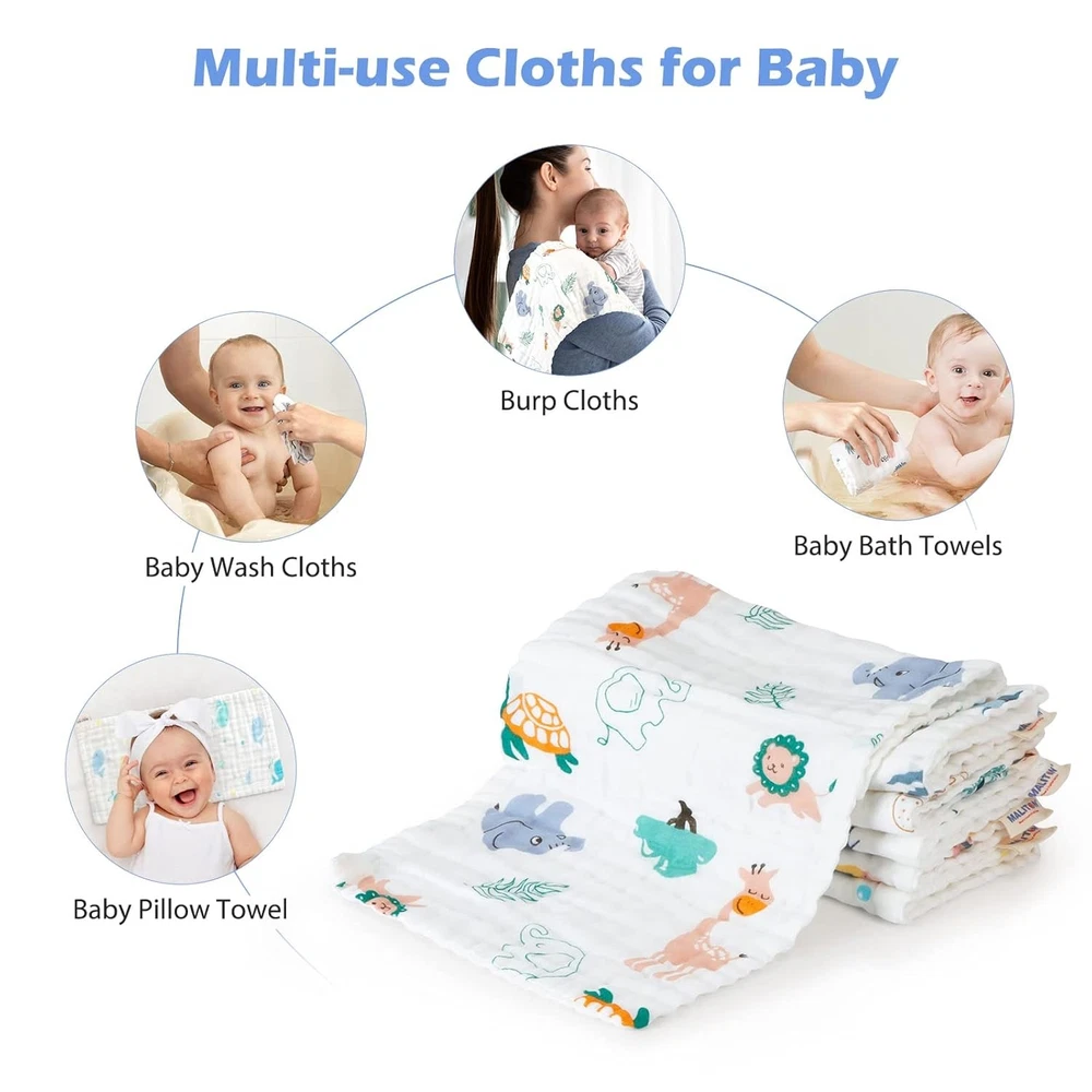 Maliton Muslin Baby Burp Cloths 6 Pack Large 20''x10'' 20"X10", White Animals