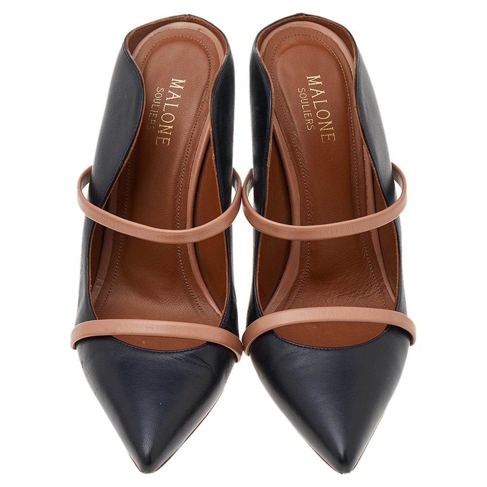 The Maureen sandals by Malone Souliers have been designed creatively to exude nothing but excellence The black leather construction brings to life a pointed toe silhouette and the dual straps across the vamps add a refined touch. Comfortable leather lined insoles and stiletto heels complete this gorgeous pair.Certified by The Luxury Closet - This item has gone through a detailed authentication process overseen by our experts. We offer a lifetime guarantee of authenticity on all our items. Import duties, taxes and charges are not included in the item price. These charges are the buyers responsibility. Please check with your country’s customs office to determine what these additional cost will be prior to buying. Our eBay Store About Us Contact Us Add to Favorite Sellers Malone Souliers Black/Beige Leather Maureen Sandals Size 38 $507.1 The Maureen sandals by Malone Souliers have been designed creatively to exude nothing but excellence The black leather construction brings to life a pointed toe silhouette and the dual straps across the vamps add a refined touch. Comfortable leather lined insoles and stiletto heels complete this gorgeous pair. Product Details Brand Color Black Dimensions Material Leather Size 38 Outsole Width 8 cm Outsole Length 23 cm Heel Height 10 cm Includes The Luxury Closet Packaging Certified by The Luxury Closet This item has gone through a detailed authentication process overseen by our experts. We offer a lifetime guarantee of authenticity on all our items. How We Check The in-house team of experts at The Luxury Closet is highly trained to verify the authenticity and the condition of the luxury products. They ensure that only 100% authentic items are put on sale.The evaluation process is unique with its own mix of assessment criteria and differs according to the category. Each item is evaluated based on the following combination of hallmarks, hardware, stitching, symmetry, material, craftsmanship, stamping, codes, hologram stickers, and packaging. Our authenticators also check if the items have been modified or amended (e.g., aftermarket diamonds, replaced batteries, repaired bags, etc.) International Buyers Import duties, taxes and charges are not included in the item price. These charges are the buyers responsibility. Please check with your country’s customs office to determine what these additional cost will be prior to buying.