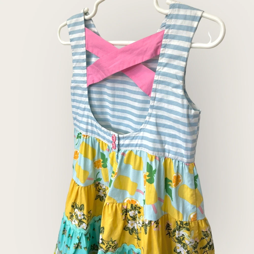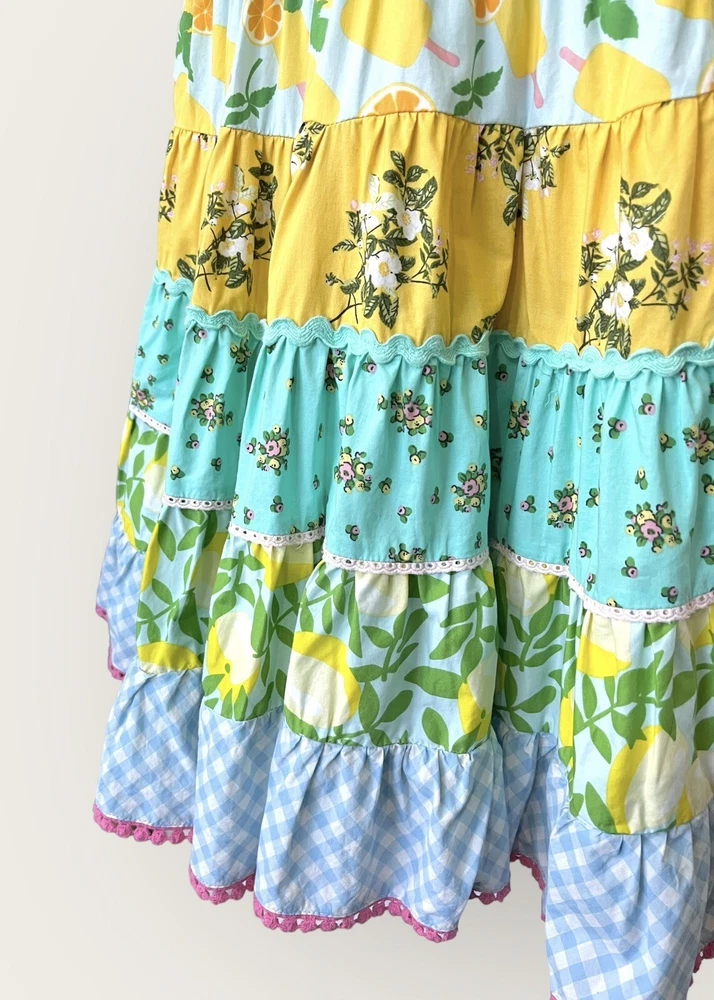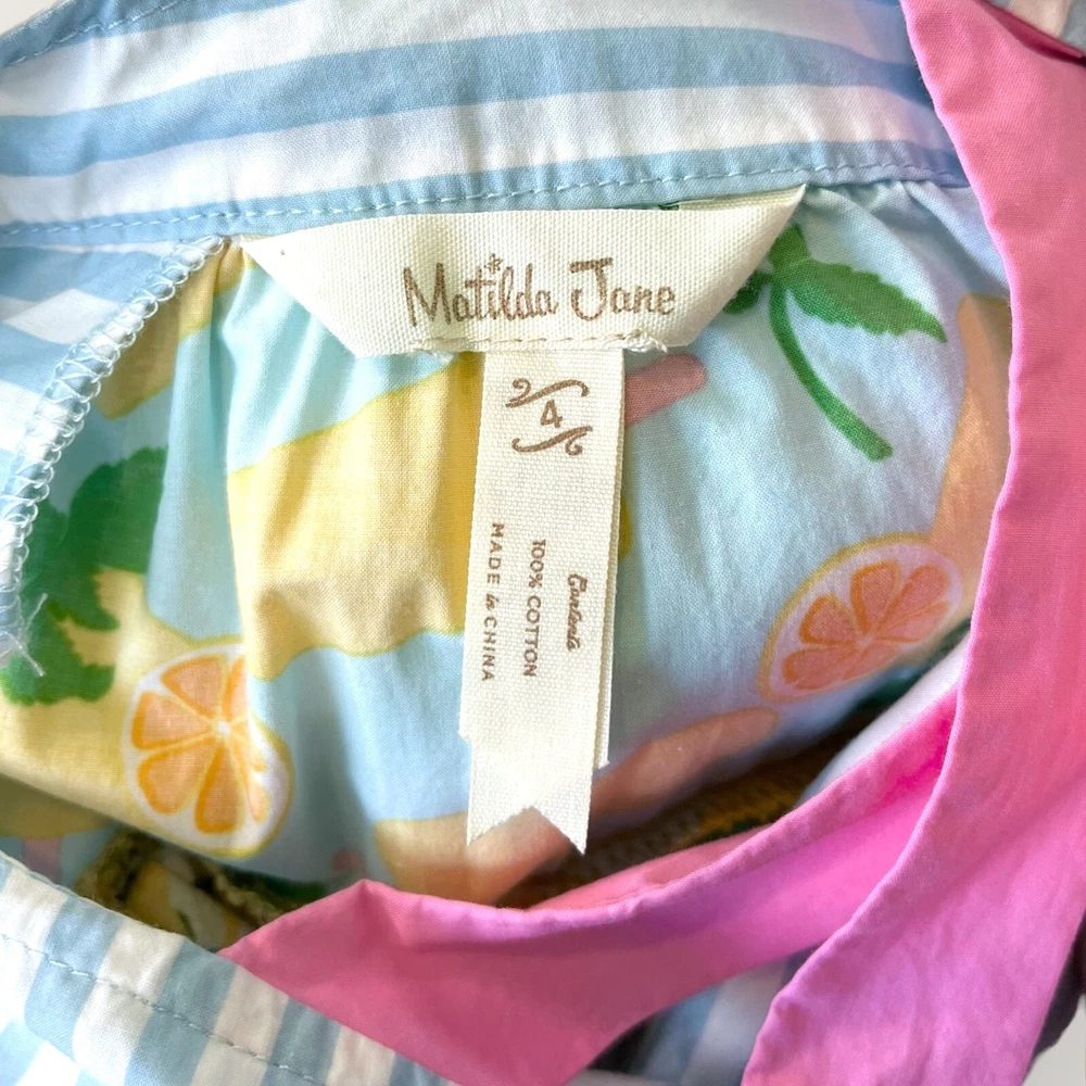This beautiful Matilda Jane dress is perfect for any occasion! The tiered maxi style and gorgeous floral pattern make it a great choice for parties, weddings, or just a casual day out. The dress features a round neck and sleeveless design with a comfortable pullover closure. Whether it's for your little girl or as a gift, this dress is a must-have for any summer or spring wardrobe. The multicolor floral pattern is eye-catching and fun, and the long length adds a touch of elegance. Made by Matilda Jane, a trusted brand in baby and toddler clothing, this dress will not disappoint. Dress is pre-owned. No stains or markings. Great condition!