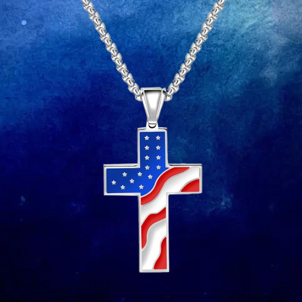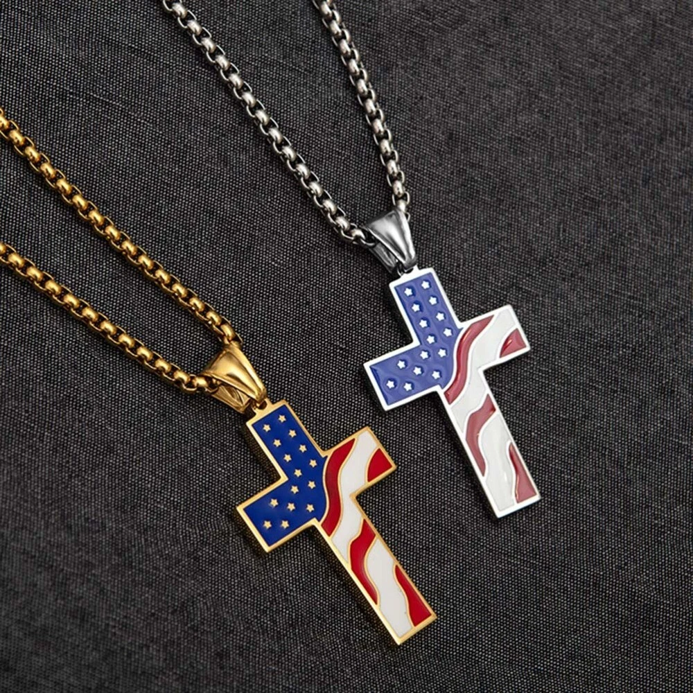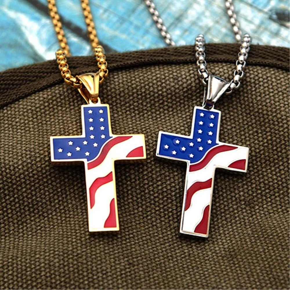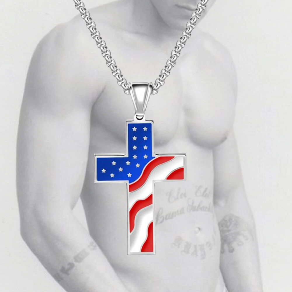Man Cross Pendant Male Mens Jewelry Necklace United States Flag Pendants