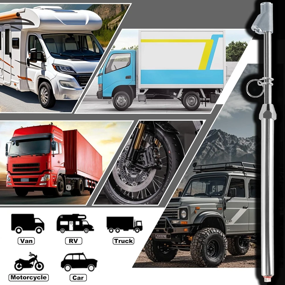 Amplio rango de medición: este manómetro mide presiones de 10 a 160 libras o de 80 a 1100 kPa, lo que lo hace adecuado para varios vehículos, incluidos automóviles, camiones, motocicletas y bicicletas. Materiales de alta calidad: el manómetro está fabricado con aleación de zinc y cobre, lo que garantiza su durabilidad. Los componentes clave incluyen un cabezal doble de aleación de zinc, un núcleo de cobre y tubos de cobre niquelados, que contribuyen a lecturas precisas y confiabilidad a largo plazo. Escala de doble cara: la regla de plástico del manómetro tiene escalas en ambos lados: números negros para 10 a 160 libras y números rojos para 80 a 1100 kPa, lo que permite a los usuarios elegir la unidad de medida que se adapte a sus necesidades. Mandriles de doble cabezal: equipado con mandriles de doble cabezal, el manómetro incluye un cabezal recto para acceder a las ruedas exteriores y un cabezal en ángulo para un acceso más conveniente a las ruedas interiores o a los vástagos de válvulas de difícil acceso. Incluye un gancho: el medidor viene con un gancho de hierro galvanizado para transportarlo y guardarlo cómodamente, lo que aumenta su facilidad de uso.