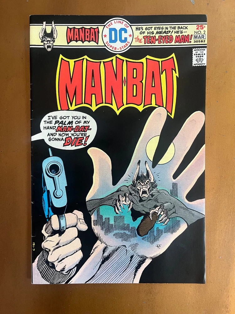 Story Title:Fugitive From Blind JusticeSigned:noPublisher:DC ComicsSeries Title:Man-Bat (1st Series)Character:Man-BatType:Comic BookIssue Number:2Unit of Sale:Single UnitEra:Bronze Age (1970-83)Publication Year:1976Genre:MonsterArtist/Writer:Martin Pasko, Pablo MarcosCover Artist:Jim Aparo