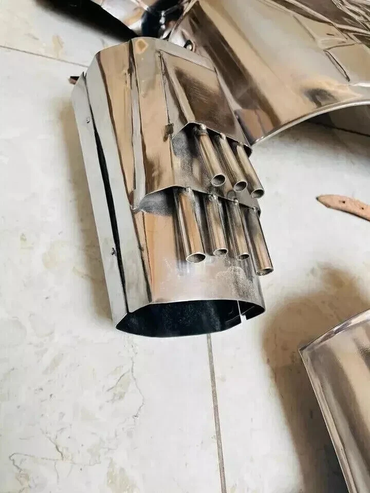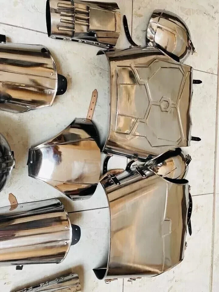 This Mandalorian Full Body Armour Costume is inspired by the iconic Star Wars character. The suit is handcrafted from durable plastic and features a silver full body armour design. It is available in M/L size and is perfect for any fan of the Star Wars franchise. The costume is perfect for Halloween, cosplay or any other occasion where you want to dress up as your favourite Star Wars character. The suit is made in the United States and is a must-have for any collector or fan of the series. Mandalorian Full Body Armour Costume Inspired Full Suit of Armor Star Wars Description: Premium quality well made Full Body Armor Suit Material : 18 Gauge Steel and Leather Finish: as shown in Picture Size : Adult Size Set Include -- 1- Helmet 2- Shoulders 3- Arm Protection 4- Jacket/Chest Plate 5- Thigh Protection 6- Leg Protection * Item details: *Fitment : Strong Genuine Leather Straps for fixing the Armor on body. *Handmade : Yes * Adjustable Leather Straps * All items are coated with rust-free paint from inside. * All belts are made of sturdy brown or black leather. * Edges of every item detail are carefully rolled. Our products are shipped with express courier. Look Photos For Actual Image Of Product. All Work is Hand Made. This is a Reproduction Item, Not Sold As Antique. Good Piece Of Collection. Best for gift. Useful In Travel Time. Please Visit Our Store & Check More Beautiful Items