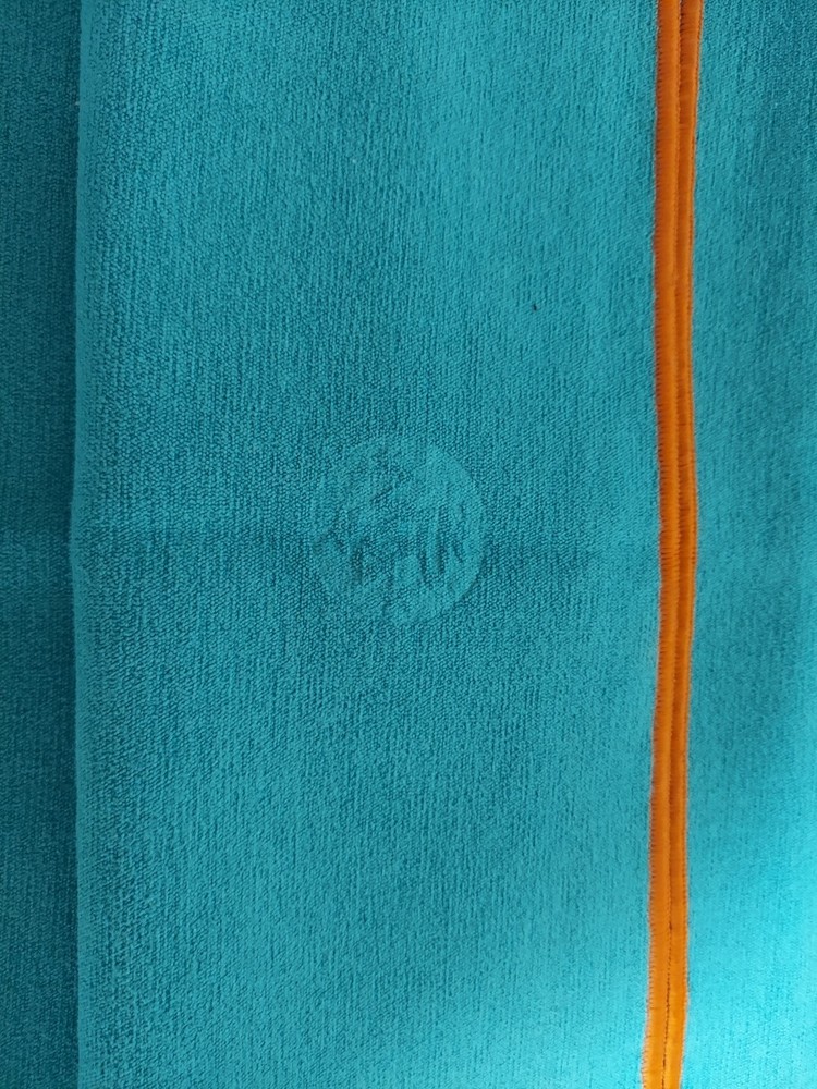 The Manduka Yogitoes Skidless Blue and Orange Dot Yoga Towel Grip Mat is a high-quality yoga mat designed for unisex adults. This rectangular mat features a non-slip design with a raised pattern for added grip, making it ideal for yoga practice. Made from a combination of polyester, nylon, and silicone, this mat is durable and easy to care for by washing. The vibrant blue color and orange dot logo add a fun and stylish touch to your yoga routine. Perfect for any yoga enthusiast looking for a reliable and comfortable mat for their practice. This is new yoga towel without tags. Perfect for hot / bikram yoga practice. Color is unisex.