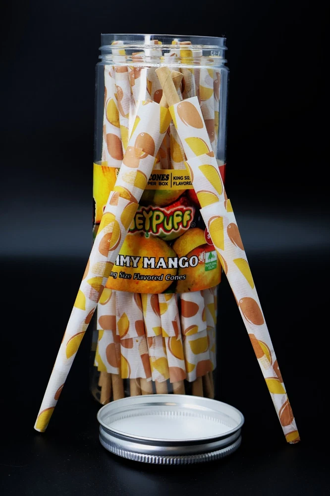 Flavor: Mango Flavored Material: High Quality Fiber Paper The Length of Cigarette Cone: 110 MM / 4.33 Inches Brand: Novelty Nest Modified Item: No Use: For Smoking Tobacco Country/Region of Manufacture: United States The Quantity of Plastic Tube: 72Cone/Can The Length of Plastic Doob: 180 MM / 7.09 Inches