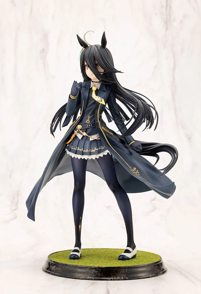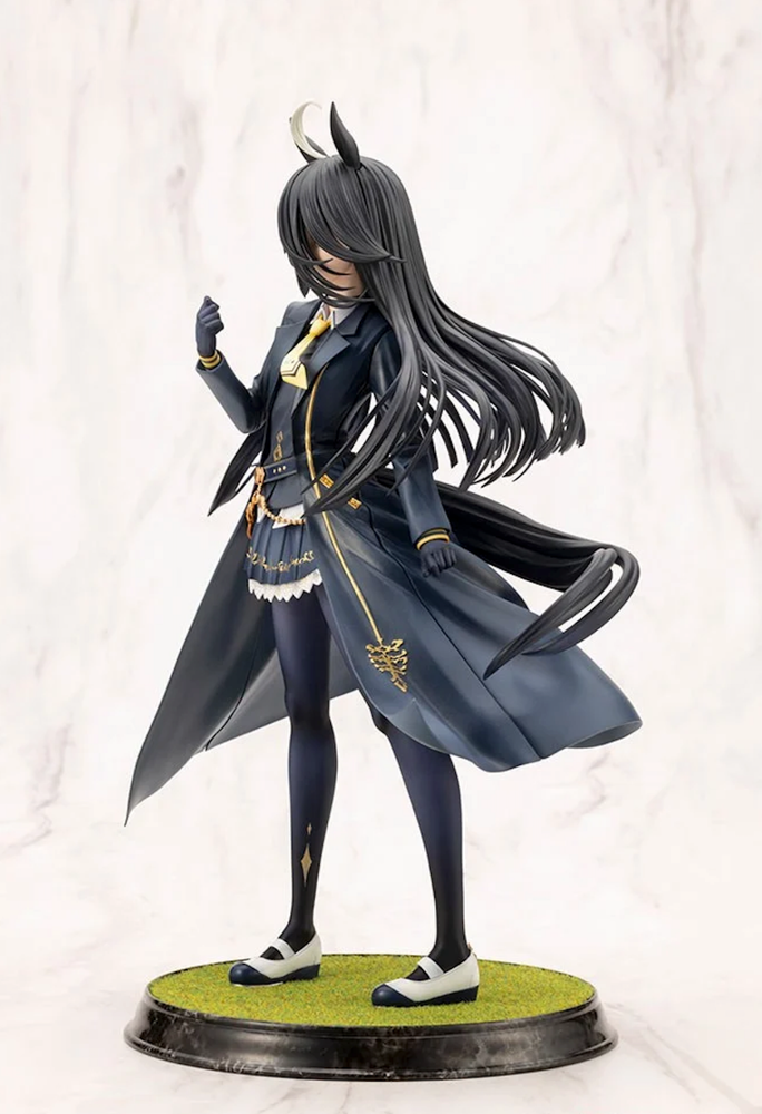 “I... am here. Together with someone you can’t see.” ● From Uma Musume Pretty Derby , “Manhattan Cafe” is now available as a scale figure! ● The dynamic flow of her racing outfit, as if fluttering in the wind, along with the meticulous sculpting and detailed paintwork, fully captures the charm of “Manhattan Cafe.” ● Additionally, the figure includes an interchangeable hand part holding a mug—perfect for displaying in your preferred style. ● The base, made with artificial turf material, is designed to evoke the heat and excitement of the racetrack. ● Be sure to welcome the radiant presence of “Manhattan Cafe” into your collection! ● Sculptor: Takanao ● Package size/weight: 32 x 25 x 20 cm / 930g ● Total height: approx. 248mm (including base) (C) Cygames, Inc.