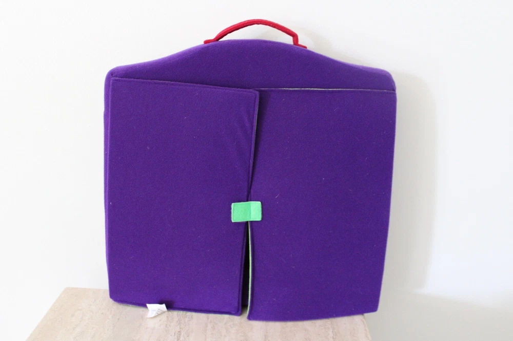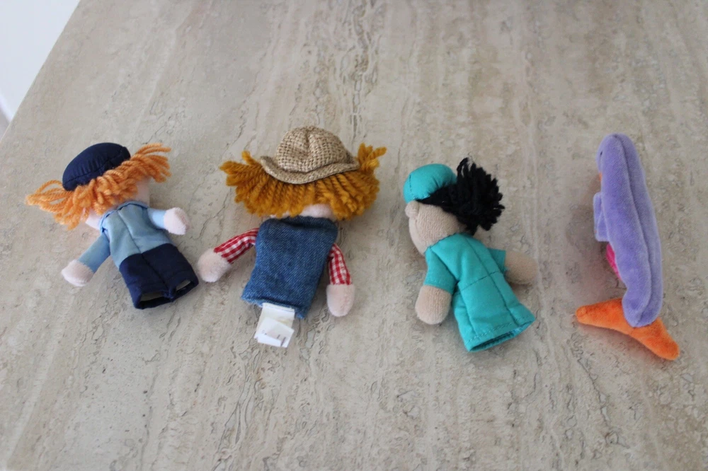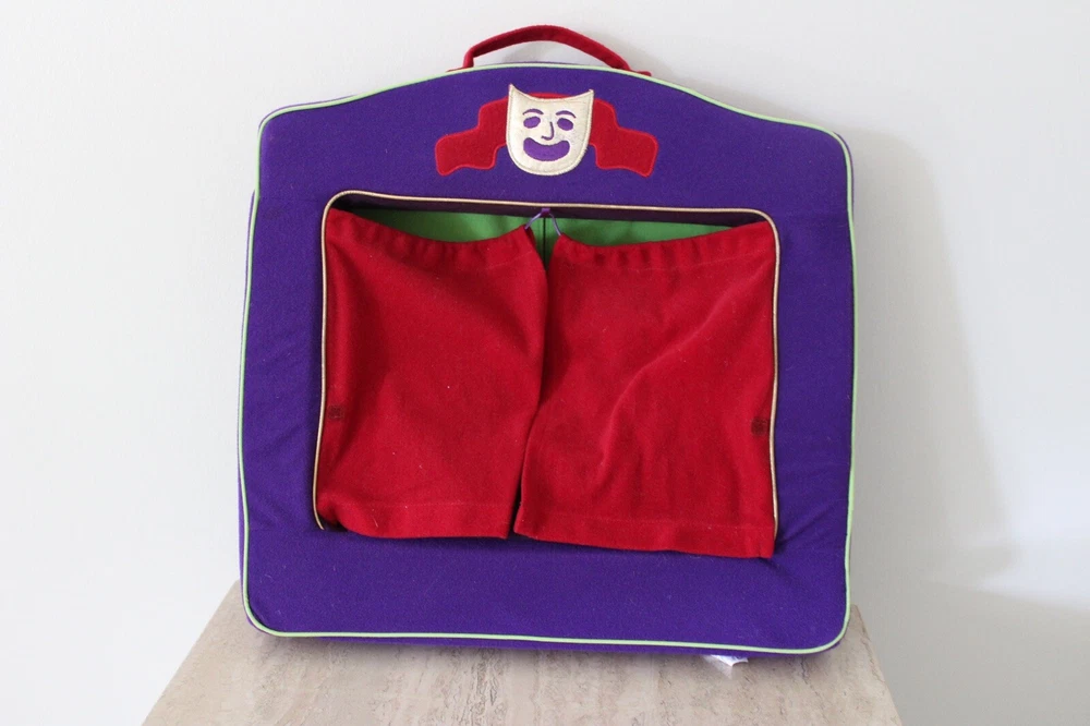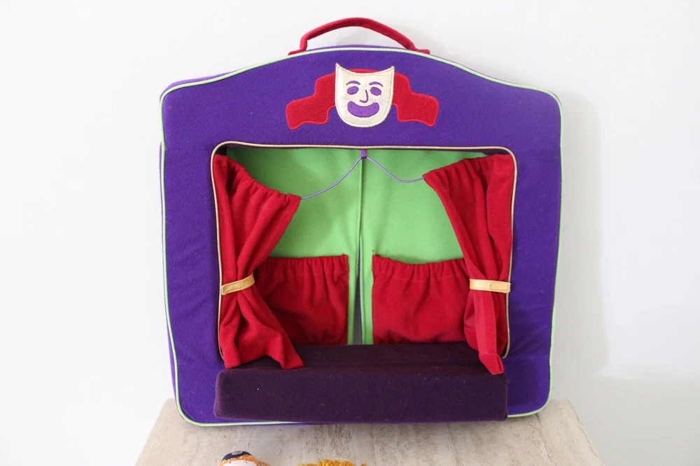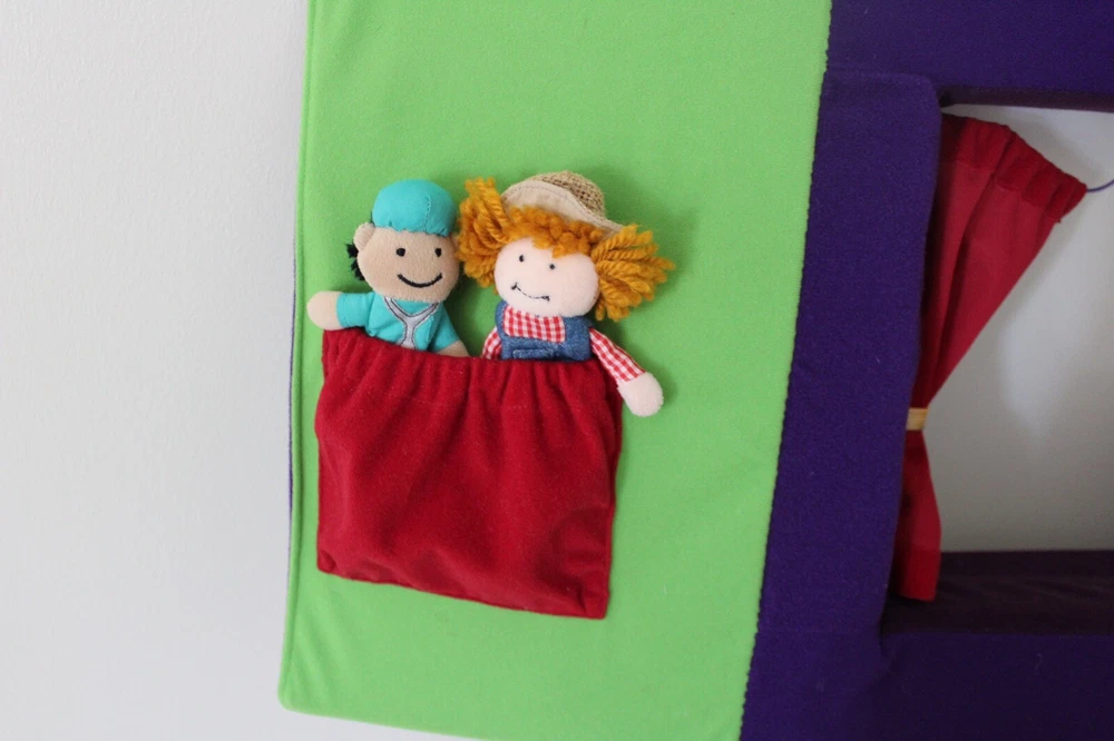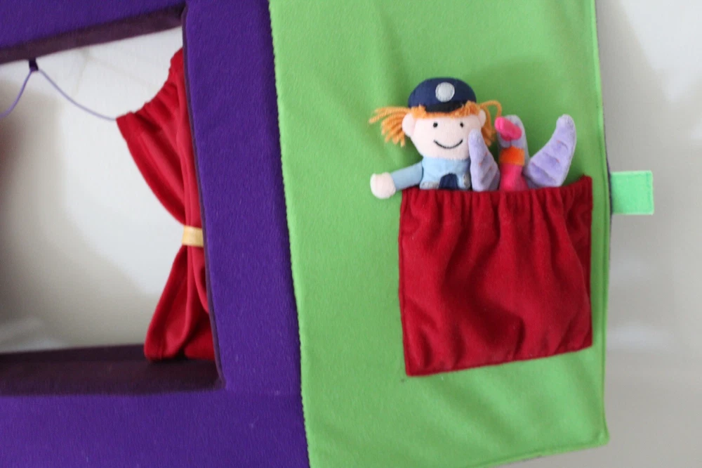 Manhattan Toy Company Purple Cloth Puppet Theater with Four Finger Puppets Measures 15” x 16” x 3” In a smoke-free home