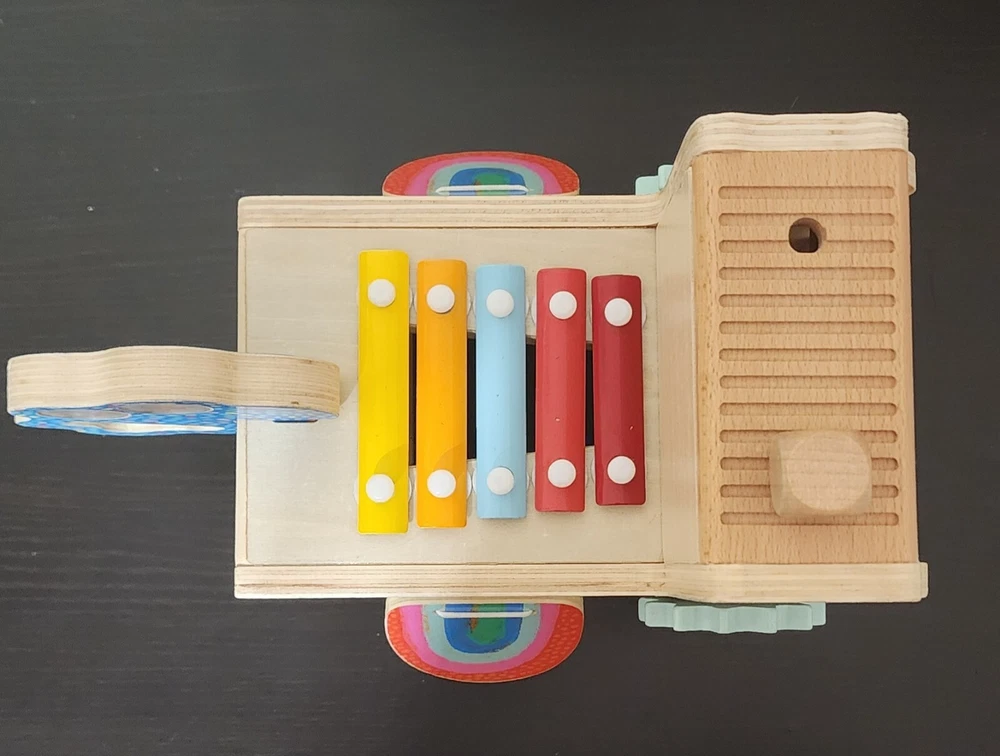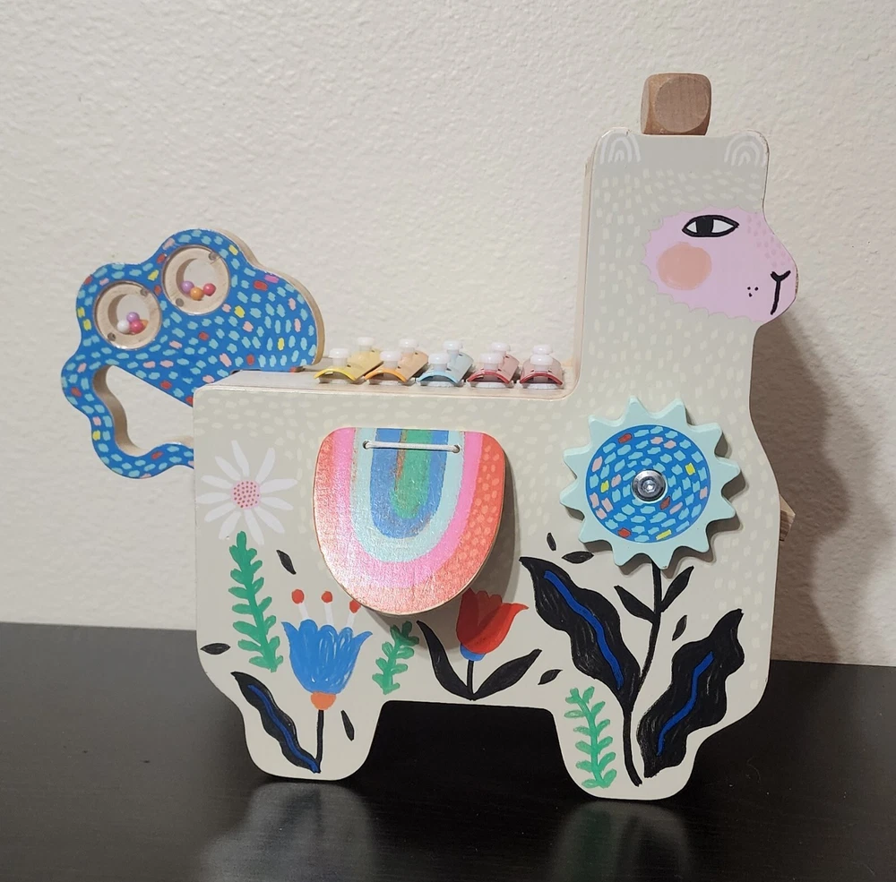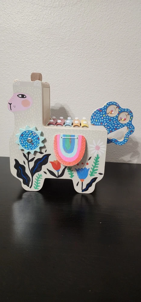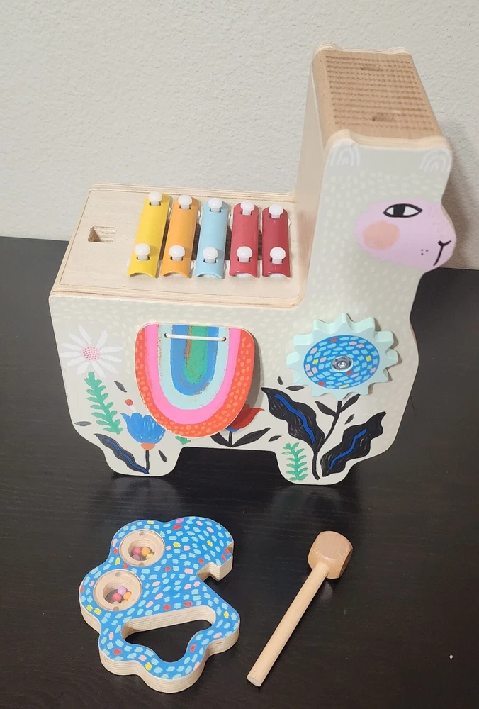 Manhattan Toy Wooden Musical Instrument Lili Llama Xylophone Rattle Learning Toy Preowned in Great Condition with Minimal Signs of Wear. Missing 1 of the 2 Hammers. Below Information from the Manufacturer: Get your jam on! This Llama is loaded with musical fun and activities: 4 spinners, 2 gears, 1 maraca tail, 5-bar xylophone, 1 set of notches/washboard for ratchet sound, 2 clacking saddle blankets and 2 mallets that store in Lili's head. The whole thing is cute enough to leave sitting out for all to see. Now a Toy of the Year Finalist! Named one of the Best Toys from Toy Fair 2020 by Good Housekeeping Institute. Among the Hottest Toys of 2020 that Kids Will Flip For. Measures 7.2D x 4.5H x 9W in. | 18.4D x 11.5H x 22.9W cm. All wood toys have non-toxic water-based finishes. This product meets or exceeds EN71 and CPSIA safety regulations.