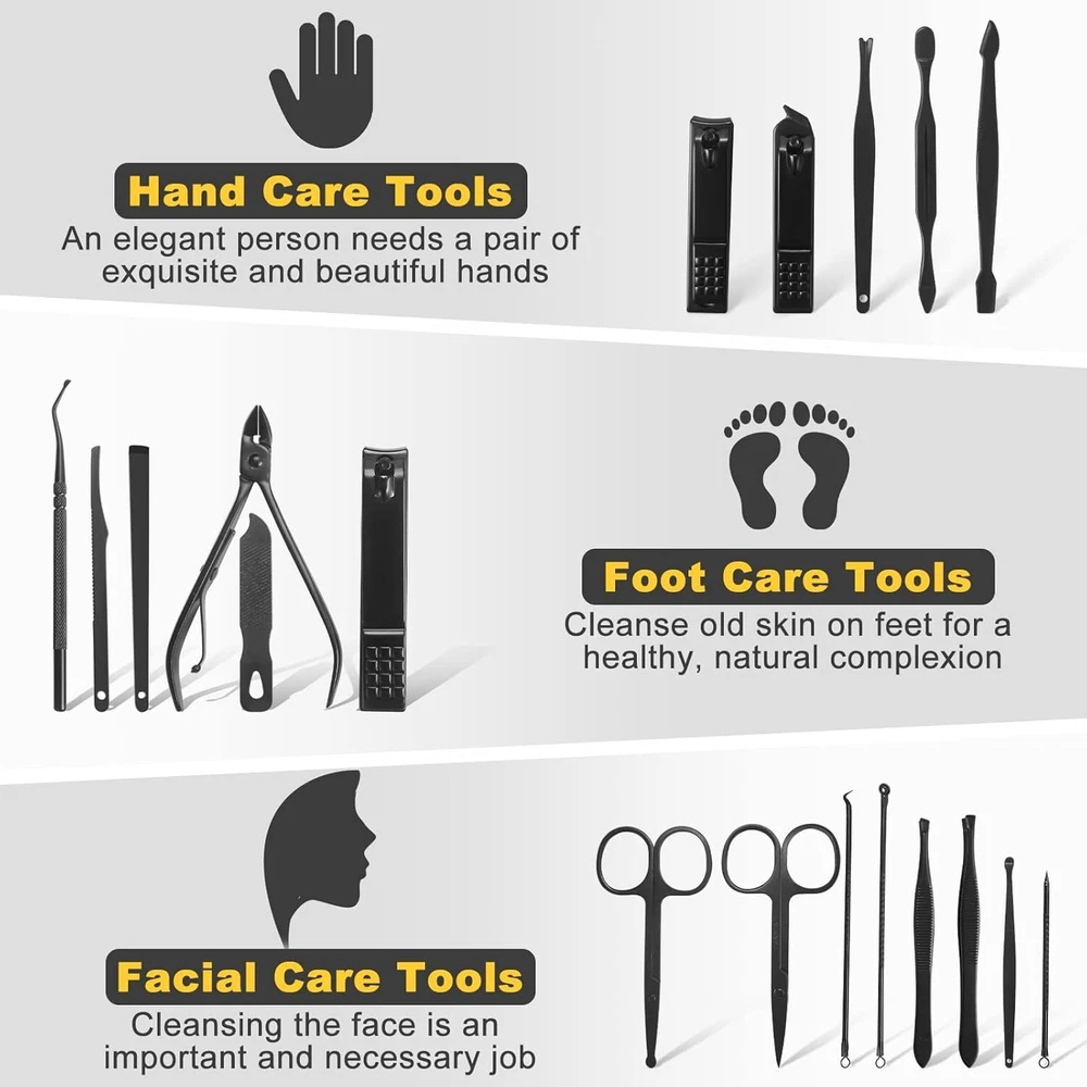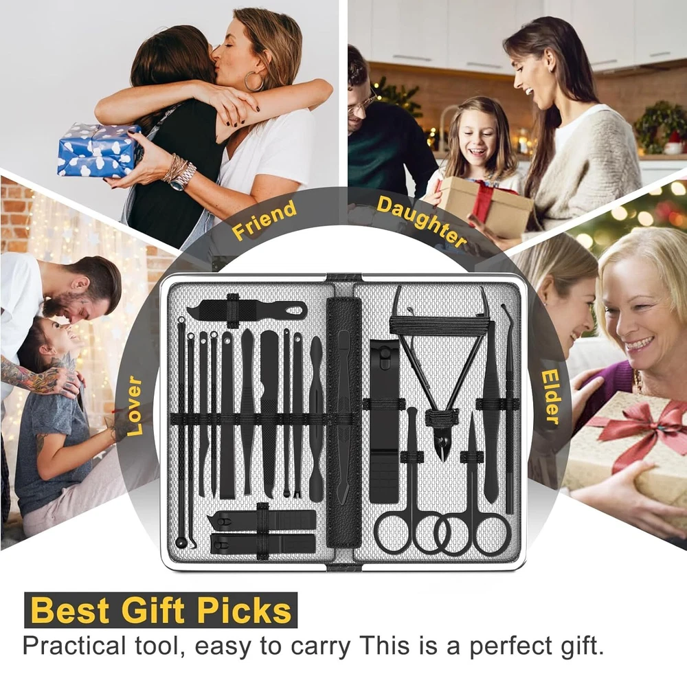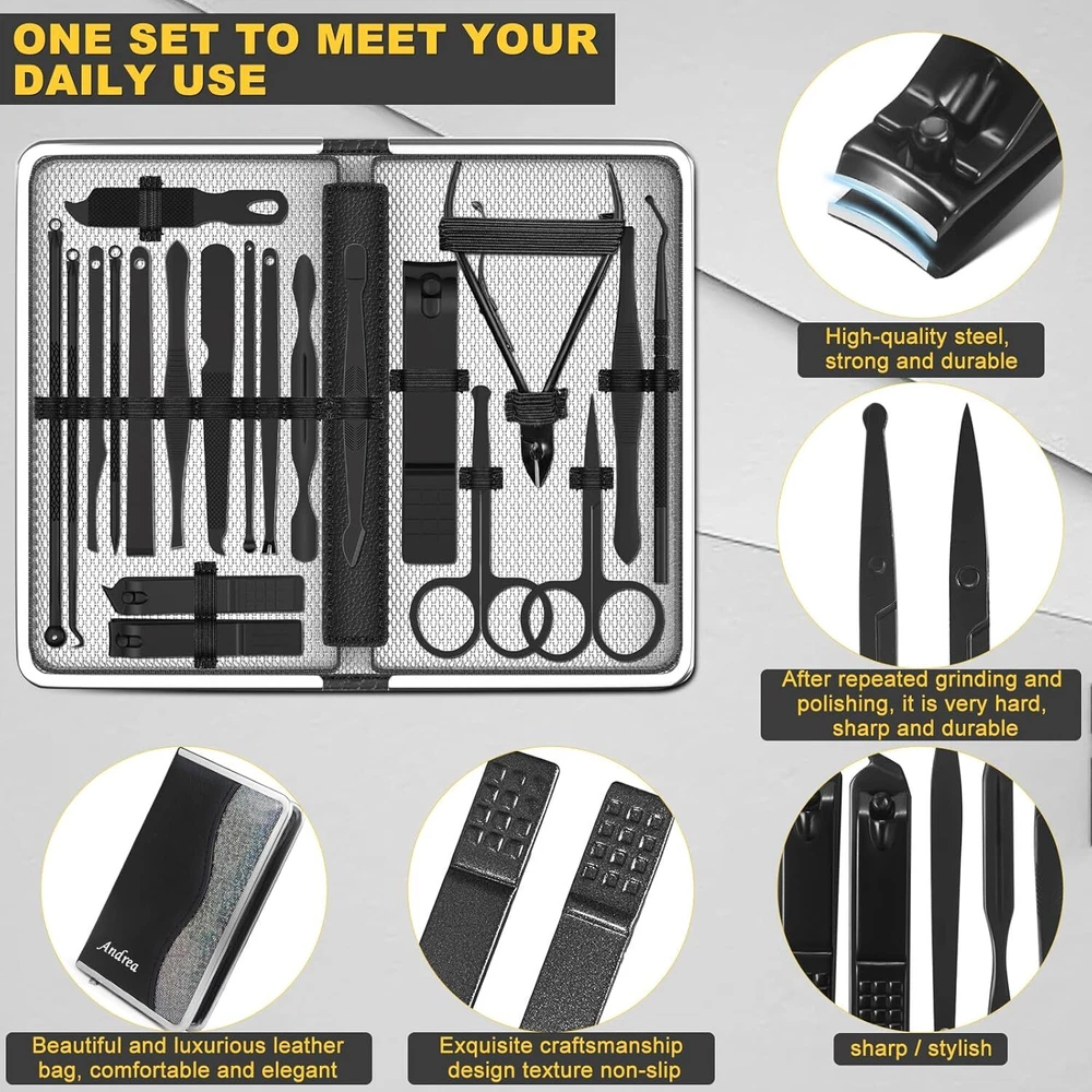 Manicure Set Personal Care Mens Grooming Kit 20 In 1 Professional Manicure Kit Pedicure Kit,Nail Clippers for Men and Beauty Tool Portable Set,with Luxurious Travel Case (Black)