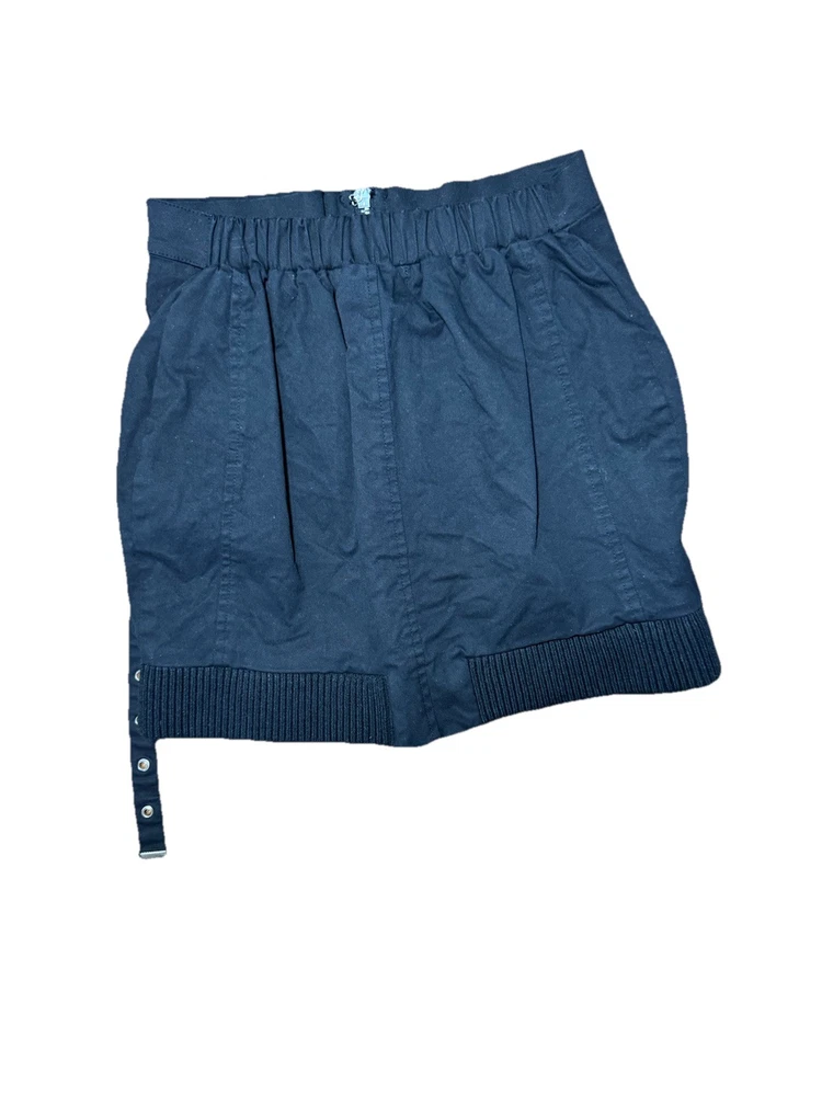 This Maniere De Voir Mini Skirt in size 6 is a stylish piece with a streetwear and gothic-inspired design. The skirt features a solid black color with studded accents and various hardware details like buttons, buckles, and zippers, giving it a unique and edgy look. Made from a combination of elastane and cotton, it offers a comfortable fit with a mid-rise waist and convenient pockets. The canvas fabric adds to its durability, making it a versatile piece for a bold and trendy wardrobe. EUC Size 6 Waist 24" Length 14"
