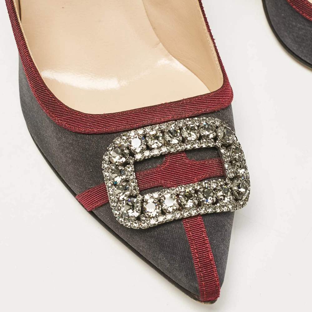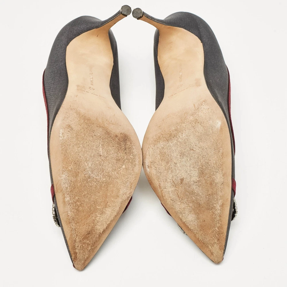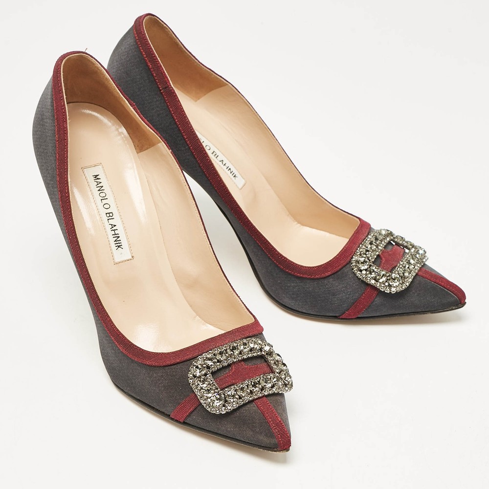 Make a chic style statement with these designer pumps. They showcase sturdy heels and durable soles, perfect for your fashionable outingsCertified by The Luxury Closet - This item has gone through a detailed authentication process overseen by our experts. We offer a lifetime guarantee of authenticity on all our items. Import duties, taxes and charges are not included in the item price. These charges are the buyers responsibility. Please check with your country’s customs office to determine what these additional cost will be prior to buying. Our eBay Store About Us Contact Us Add to Favorite Sellers Manolo Blahnik Grey/Burgundy Satin Crystal Gotrian Pumps Size 42 $155.1 Make a chic style statement with these designer pumps. They showcase sturdy heels and durable soles, perfect for your fashionable outings Product Details Brand Color Grey Dimensions Material Satin Size 42 Outsole Width 8.5 cm Outsole Length 25 cm Heel Height 11 cm Includes Original Box Certified by The Luxury Closet This item has gone through a detailed authentication process overseen by our experts. We offer a lifetime guarantee of authenticity on all our items. How We Check The in-house team of experts at The Luxury Closet is highly trained to verify the authenticity and the condition of the luxury products. They ensure that only 100% authentic items are put on sale.The evaluation process is unique with its own mix of assessment criteria and differs according to the category. Each item is evaluated based on the following combination of hallmarks, hardware, stitching, symmetry, material, craftsmanship, stamping, codes, hologram stickers, and packaging. Our authenticators also check if the items have been modified or amended (e.g., aftermarket diamonds, replaced batteries, repaired bags, etc.) International Buyers Import duties, taxes and charges are not included in the item price. These charges are the buyers responsibility. Please check with your country’s customs office to determine what these additional cost will be prior to buying.