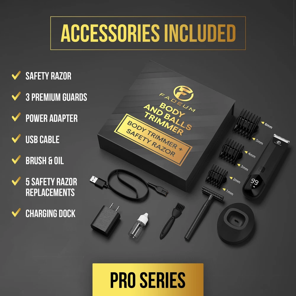 【INTRODUCING AN INDUSTRY FIRST】 - There are many body shavers for men on the market, but brings the complete package to the balls trimmer market with our exclusive premium trimmer and safety razor combo. Our body trimmer for men gives you the freedom, power and versatility to mow through any hair type, while our safety razor allows for the closest, most confident shave you could ask for where it counts most 【ENGINEERING AT ITS FINEST】 - We had to uncomfortably test many mens ball trimmer devices to finally engineer the perfect groin hair trimmer for men. Our next level trimmer is cordless, waterproof and includes a charging station to ensure you're fully powered to mow through the toughest of bushes. It also comes with 3 trimmer guards to give the ability to level change beard and hair lengths 【TRUE ESSENCE OF MANSCAPING】 - Many mens body hair trimmer companies claim "nick free skin tight" shave, but that's just not really the case. Well we don't need to play the balancing game anymore between close shave and safety, we introduce to you an exclusively designed safety razor that gives you a true skin tight shave with 100% safety. Our all metal safety razor was specifically engineered to allow you to shave any body part while preventing the dreaded nick 【THE WHERE AND THE HOW】 - 's ball and body hair trimmer is the most versitile kit on the market. Whether you're lining up your beard or mowing the lawn, our nick free, skin safe trimmer kit will give you comfortable experience in feeling your best. Our industry leading ceramic blades are precision sharp with the hygenic versatility to be replaced with our unique snap on/off feature 【MAINTENANCE FOR TOOLS】 - 'S ball and body trimmer was designed to last. Protect your investment by ensuring you replace your trimmer heads every 3 months and safety razor blades every 2-3 weeks