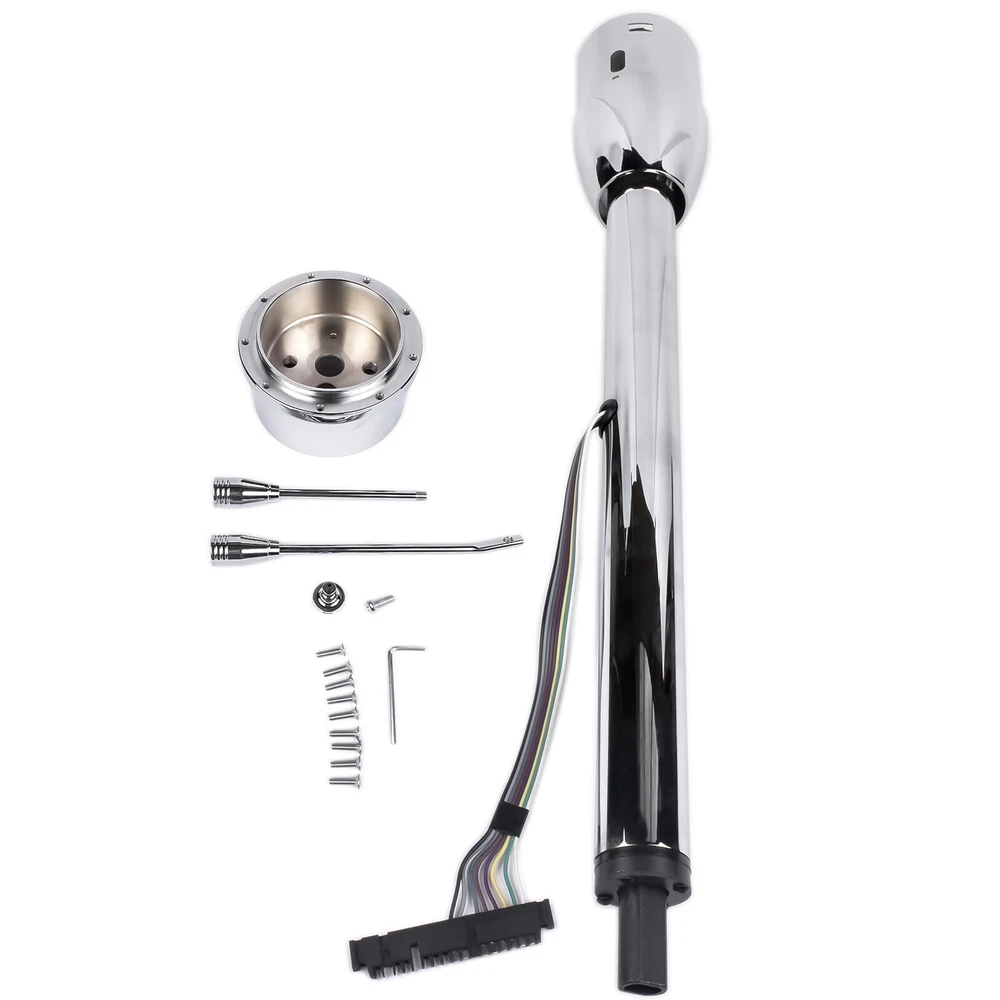 Vehicle Information: OEM Part Number R91001C-30" Description: Upgrade your vehicle's steering performance with our premium steering column. Designed to provide precise control and smooth maneuverability, this essential component ensures a comfortable and safe driving experience. Crafted from high-quality materials, our steering column guarantees durability and longevity, making it an ideal choice for any car enthusiast or professional mechanic. Features: -- 30'' Steering Column (measured from bottom of shaft to top of shroud) -- Tilt lever, turn signal lever, flasher button included -- Wiring diagram included -- Without key -- Without ignition switch -- With a 9 bolt style steering wheel adapter -- 2" Column diameter -- 1" DD Output shaft (This column will take either a 1" DD around the outside of the shaft or a 3/4''DD will slide inside the shaft) -- 4&1/4'' Male GM wire connector -- Chrome finish -- Made of Stainless Steel (except the bell housing is cast aluminum) -- Works for manual transmission Package Includes: 1x Complete Tilt Steering Column Note: Professional installation is highly recommended. Shipping Policy Payment Method Returns Policy Shipping Policy -Please leave us your full name, your telephone number and detailed address when ordering. -We ship to your eBay or Paypal address. Please make sure your eBay and Paypal address is correct before you pay the order. -We try our best to pack the products as good and safe as possible ,so they always arrive in a good condition. -The items will be the shipped the same working day for the order before 10:00 a.m. -The items will be the shipped the other working day for the order after 10:00 a.m. Payment Method -We accept PayPal only. -All major credit cards are accepted through secure payment processor PayPal. -Payment must be received within 4 business days of auction closing. Returns Policy -We offer sophisticated products at a high technological level, with the highest possible quality and the most favorable price. -With these parts you can replace your defective parts simply plug and play. -Our warranty is valid for max. 24 months without mileage limitation. -Please compare carefully with Photos or OE number before purchasing the part. -Once a problem occurs with the purchased product, please do not hesitate to let us know with Ebay messages,we will offer you refund or replacement. Product View Vehicle Information: OEM Part Number R91001C-30" Description: Upgrade your vehicle's steering performance with our premium steering column. Designed to provide precise control and smooth maneuverability, this essential component ensures a comfortable and safe driving experience. Crafted from high-quality materials, our steering column guarantees durability and longevity, making it an ideal choice for any car enthusiast or professional mechanic. Features: -- 30'' Steering Column (measured from bottom of shaft to top of shroud) -- Tilt lever, turn signal lever, flasher button included -- Wiring diagram included -- Without key -- Without ignition switch -- With a 9 bolt style steering wheel adapter -- 2" Column diameter -- 1" DD Output shaft (This column will take either a 1" DD around the outside of the shaft or a 3/4''DD will slide inside the shaft) -- 4&1/4'' Male GM wire connector -- Chrome finish -- Made of Stainless Steel (except the bell housing is cast aluminum) -- Works for manual transmission Package Includes: 1x Complete Tilt Steering Column Note: Professional installation is highly recommended. Shipping Policy Payment Method Returns Policy Shipping Policy -Please leave us your full name, your telephone number and detailed address when ordering. -We ship to your eBay or Paypal address. Please make sure your eBay and Paypal address is correct before you pay the order. -We try our best to pack the products as good and safe as possible ,so they always arrive in a good condition. Payment Method -We accept PayPal only. -All major credit cards are accepted through secure payment processor PayPal. -Payment must be received within 4 business days of auction closing. Returns Policy -We offer sophisticated products at a high technological level, with the highest possible quality and the most favorable price. -With these parts you can replace your defective parts simply plug and play. -Our warranty is valid for max. 24 months without mileage limitation. -Please compare carefully with Photos or OE number before purchasing the part. -Once a problem occurs with the purchased product, please do not hesitate to let us know with Ebay messages,we will offer you refund or replacement.