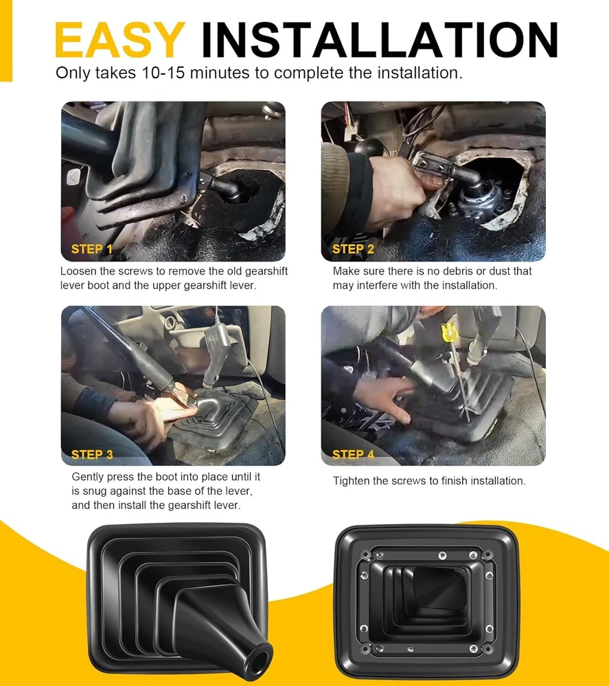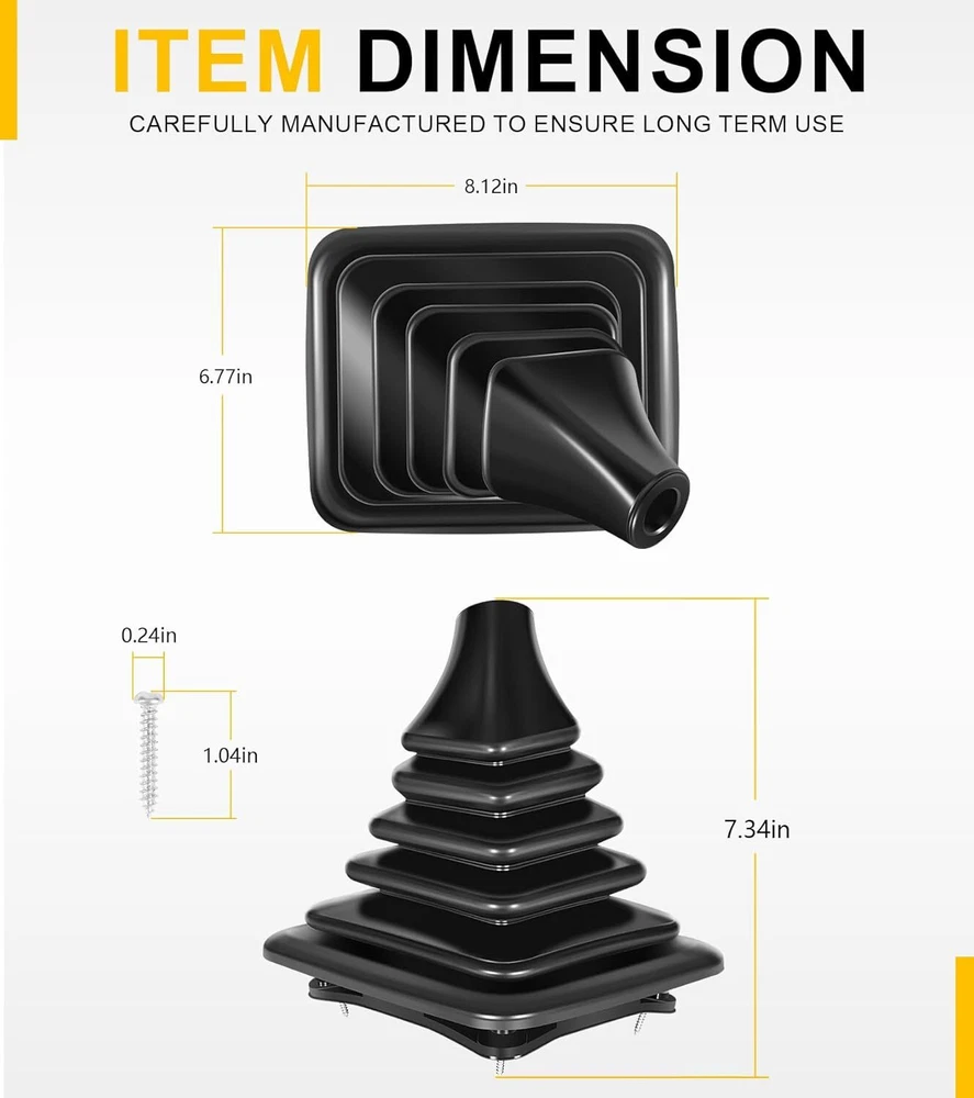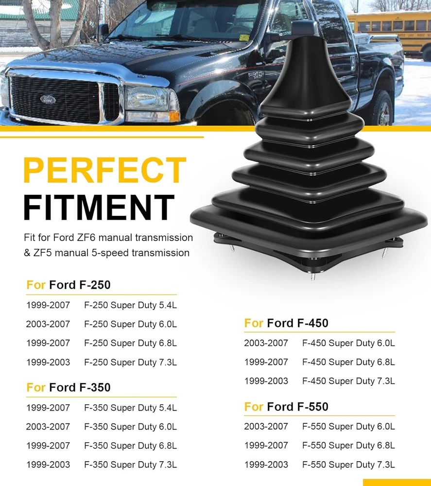 Manual Transmission Shifter Boot Gear Shifter Knob Rubber Boot for Ford F-250 F-350 F-450 F-550 Super Duty 1999-2007, for Ford ZF 5 or 6 speed manual transmissions, Replace for F81Z7277BB F81Z-7277-BB 【Fitment】 This manual transmission shift boot perfectly fits for Ford F250 F350 F450 F550 Super Duty 1999-2007. Compatible with Ford ZF6 manual transmission. Also works great with ZF5 manual 5-speed transmission. Replacement for Ford F81Z-7277-BB, F81Z 7277 BB, F81Z7277BB. (More details please refer to product description) 【Function】 Direct replacement for the old or damaged gear shift dust cover. It protects your shifter lever from dust and dirt and minimizes and vibration while driving, providing more comfortable and reliable performance. 【Easy to Install】 It only takes 10-15 minutes to complete the installation. Simply loosen the screws to remove the old boot and gearshift lever. Then gently press the boot into place until it is snug against the base of the lever and install the gearshift lever. Finally tighten the four screws to finish installation. 【Material】 Made of heavy duty black automotive grade rubber with dust-proof and good toughness. Built to last, it has great wear resistance and high temperature resistance. It can keep flexible and provide reliable performance after long term use. Superior Material Made of heavy duty black automotive grade rubber with dust-proof and good toughness. Built to last, it has great wear resistance and high temperature resistance. It can keep flexible and provide reliable performance after long term use. Play Video Direct replacement for the old or damaged gear shift dust cover. It protects your shifter lever from dust and dirt and minimizes and vibration while driving, providing more comfortable and reliable performance. Simply loosen the screws to remove the old boot and gearshift lever. Then gently press the boot into place until it is snug against the base of the lever and install the gearshift lever. Finally tighten the four screws to finish installation. CONTACT US: If you meet any problem after receiving our product, please feel free to contact us. We will try our best to solve your problem. SHIPPING POLICY: Orders will be ship out within 1-2 business days after payment has cleared. Orders from Saturdays, Sundays or holidays will process on next business day and will be ship within 24 hours. Please allow 10-30 days for international deliveries. Some shipments could take longer subject to your local customs authorities. RETURE & WARRANTY: 1 We accept 30 days return guarantee for all Items If you are unsatisfied with something you bought from us, you may send it back within 30 days of receipt, and we shall be happy to exchange or refund. 2 Leave a message note in returned box quoting your item(s) ID and buyer ID. 3 All returned products must be in their original condition and packaging. Unfortunately, if products have been assembled or modified, we cannot take them as returns. 4 It is important that we know when your return is expected. Please save your return tracking number or post receipt, and email it to us. We need this in case there are any issues during transit. 5 Refund will only be issued upon our receipt of the returned parcel. Please allow 2 working days for us to process with your return. ABOUT REPLY: If you have any questions, please feel free to email our service specialists 24 Hours a Day, 7 Days a Week, and we will reply you ASAP. If no response within 24 Hours, please check the spam of mail box or kindly re-send it to us. ABOUT FEEDBACK: Please contact us before leaving Netural or Negative feedback if you are not satisfied our service or products. Good communication is helpful for both of us to resolve any problems and issues. We work hard to make sure EVERY CUSTOMER 100% SATISFIED and resolve any problem for you and always leave positive feedback to all our customers. If you are satisfied with our service, please leave FOUR 5-Detailed Selling Rating (DSR). Thanks!