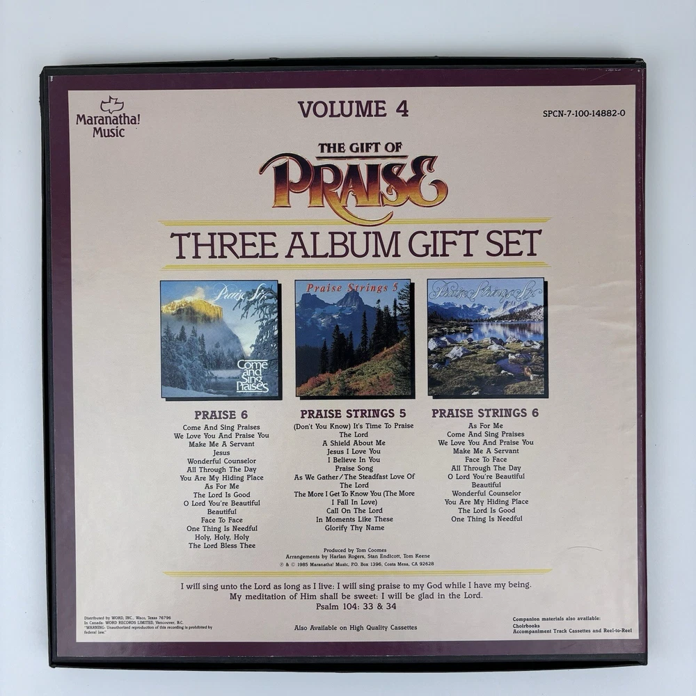 Maranatha Music "The Gift Of Praise" Volume 4 ~ 3(x) Album Gift Set SPCN-7-100