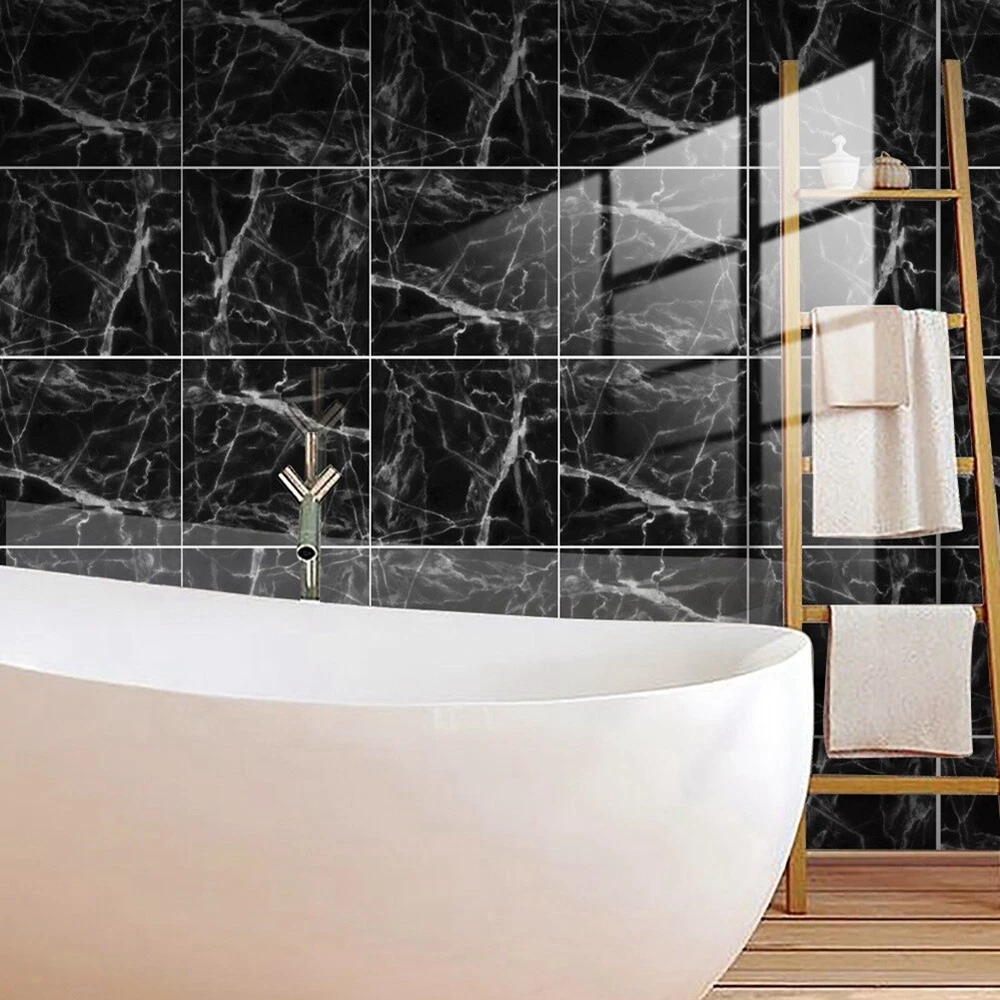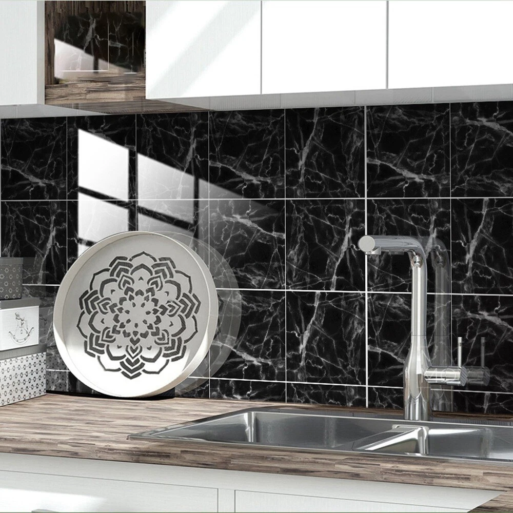 Marble Decorative Adhesive Tile Stickers for Bathroom and Kitchen Tile8551 [Quality Materials]: Our tile stickers made of PVC , the package contains 10 sheets, with fully waterproof design. [Features]: Our kitchen tile stickers are waterproof, oil-proof, easy to clean and self-adhesive. Suitable for use between -30 degrees C to 85 degrees C, to withstand heat and humidity. [Easy to install]: Easy to apply and remove, without damaging the application . Tile pattern kitchen stickers can be cut with regular scissors. Can be freely combined. [Widely used]: Our PVC waterproof self-adhesive can be used in bathrooms and kitchens, showers, doors, walls, , ceilings, tiles, plastic surfaces, household appliances or wooden furniture. Colour:B: black+white Material:pvc Size:S:10cm Package Contents: 10 x wall stickers