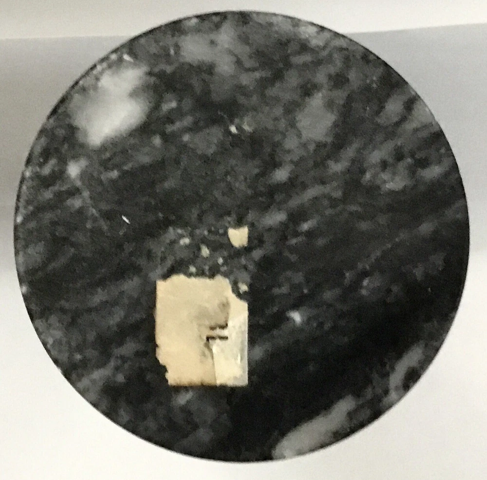 Black and gray marble vase with etched design. Vintage. Size 8” x 3” diameter