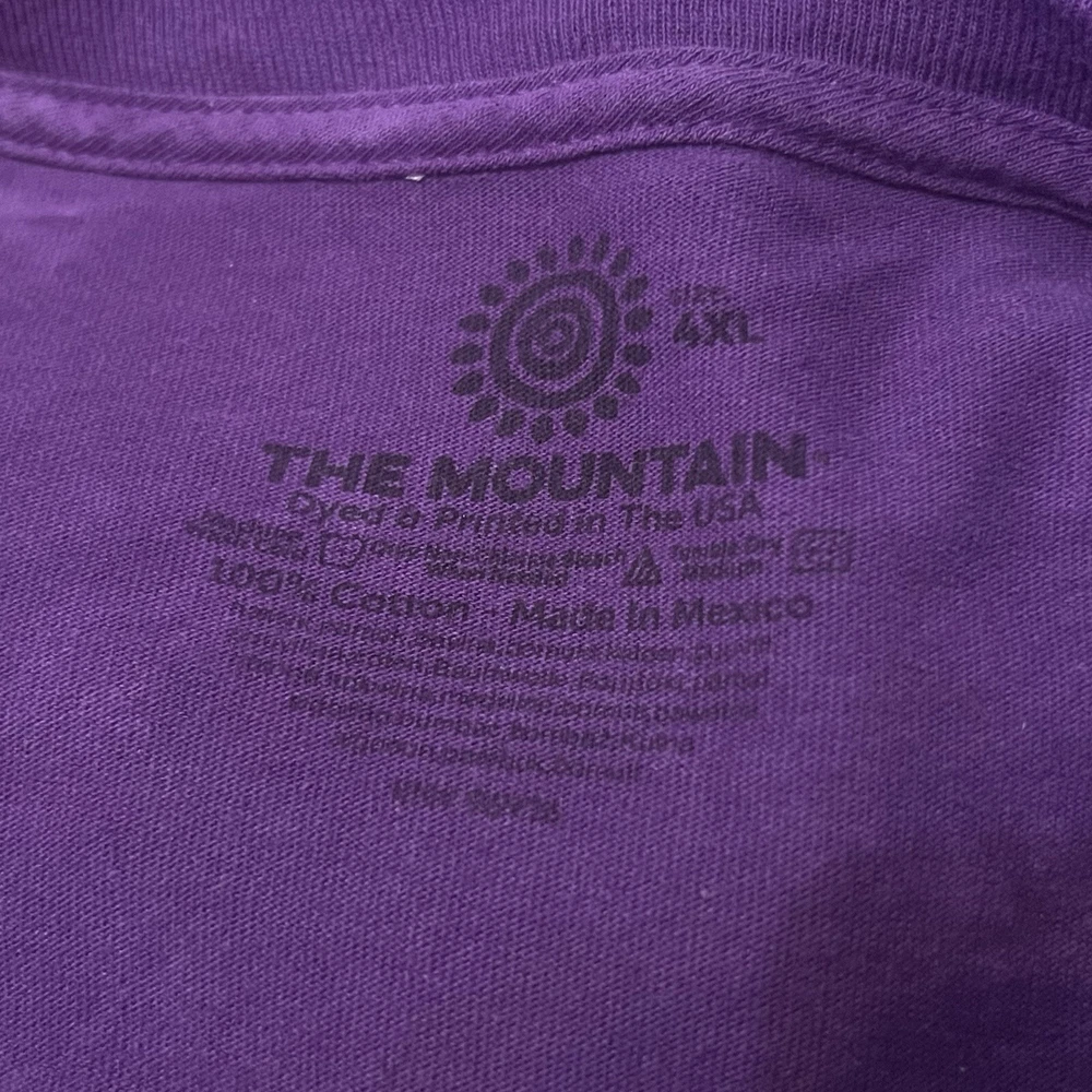 Thank you for shopping Raven's Resale. The mountain marbled purple short sleeve T-shirt. Graphic print image of a white tiger with blue eyes and cubs. •Brand-The mountain •Size-Unisex 4XL •Condition-preowned, great condition, lightly worn, no damage •Material-100% cotton Measurements taken when laid flat: •Pit to pit-28 Inches •Length-35 Inches