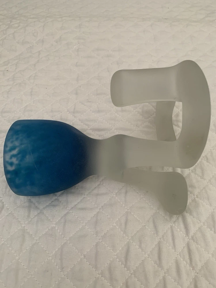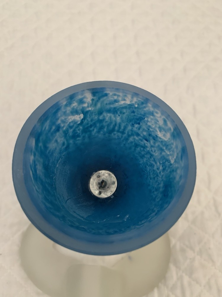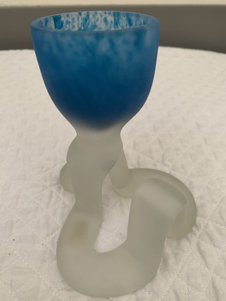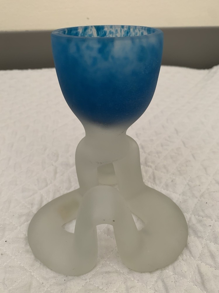 This striking candleholder is a unique addition to any collection of decorative collectibles. Its marbled pattern and blue color make it a beautiful piece to display in any room. The frosted finish adds a touch of elegance, while the unusual pedestal makes it a conversation starter. Crafted from high-quality glass and made in Poland, this candleholder is a true work of art. Its design is perfect for those who appreciate the beauty and craftsmanship of art glass. Whether you're looking for a birthday gift or simply want to add some character to your home decor, this candleholder is sure to impress.