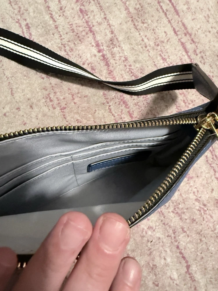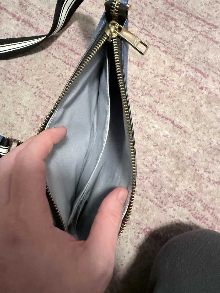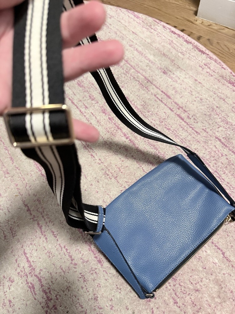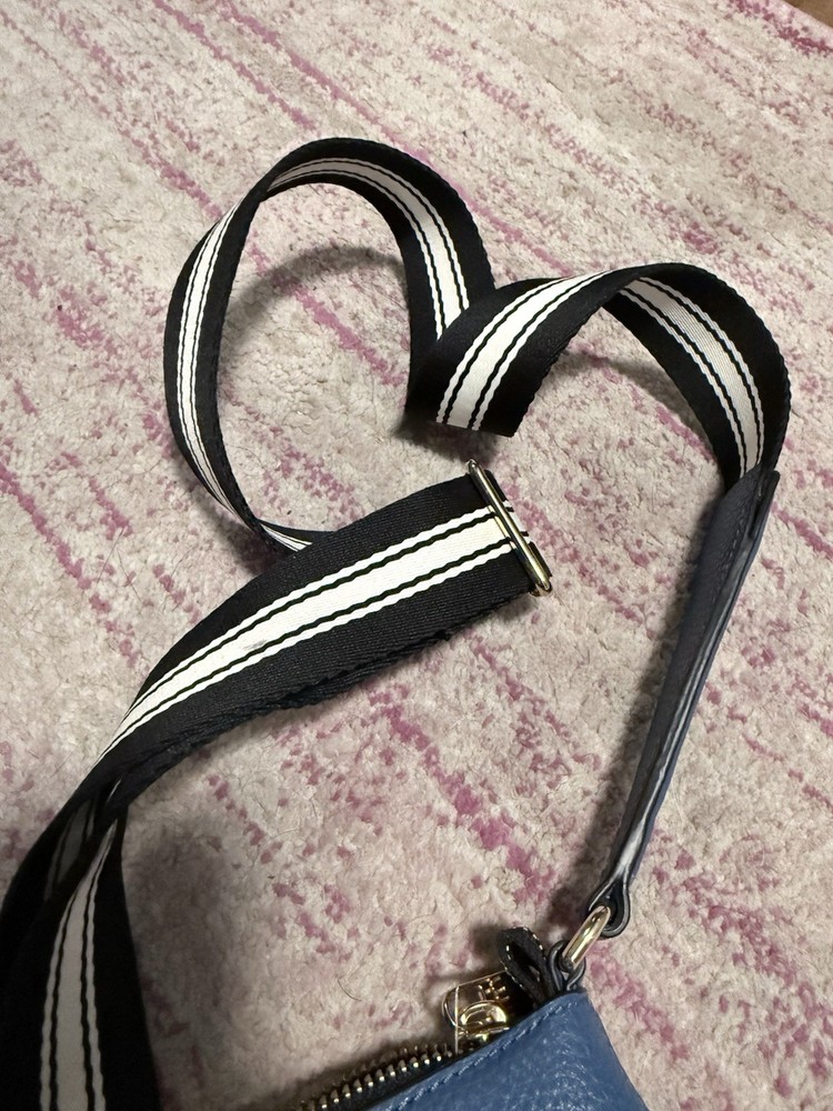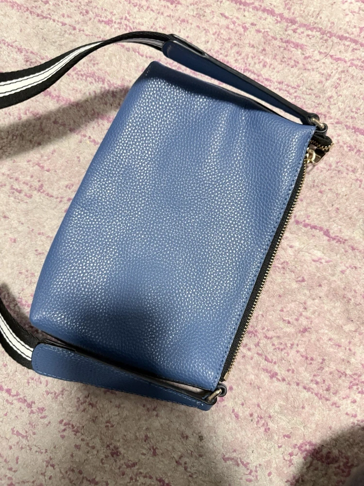 The Marc Jacobs The Cosmo Leather Crossbody Bag in Blue Heaven is a stylish and trendy handbag designed for women. Made of high-quality leather, this crossbody bag features a beautiful blue exterior color with a floral theme, adding a touch of feminine charm to any outfit. The versatile design of this bag makes it suitable for everyday use, while the brand's reputation for quality ensures it will last for years to come. Perfect for those looking for a fashionable and practical accessory to elevate their look. The adjustable woven strap is 22 inches. The purse itself is 6.5” L x 9.5” W x 1.5” D. Zip top closure. Features card slots. Leather exterior. Though this was purchased second hand, it does not appear to have ever been used. There are no visible signs of wear on the outside or inside. See photos.