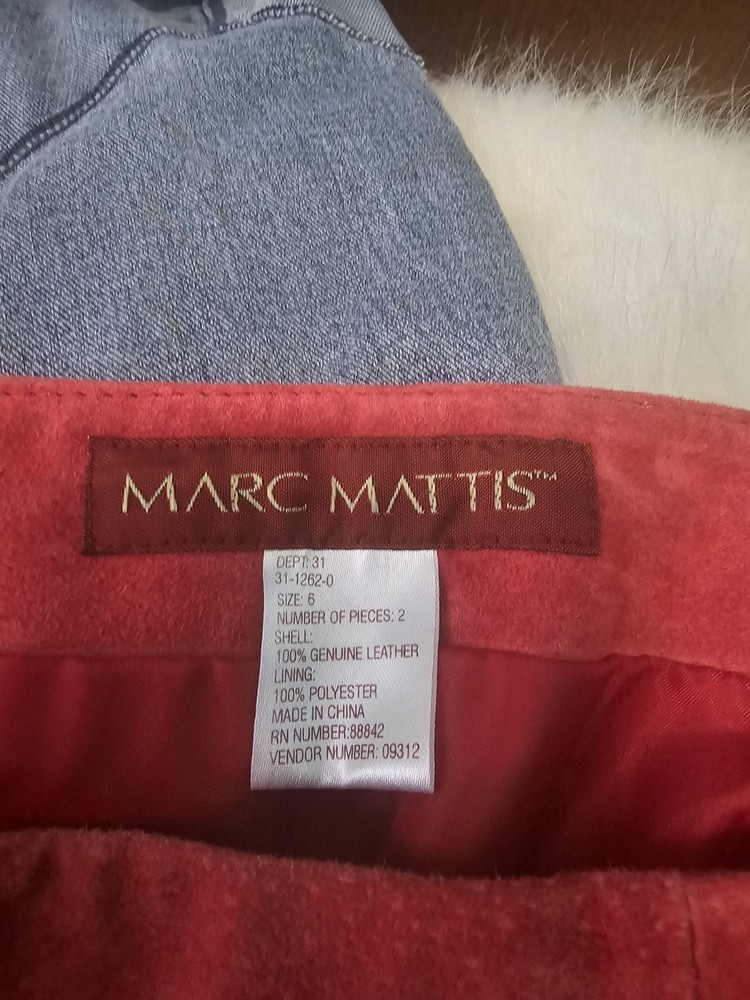 Elevate your wardrobe with the Marc Mattis 100% leather skirt, a true vintage gem that combines classic style with enduring quality. This knee-length straight and pencil skirt, in a striking red hue, is a perfect statement piece for those who appreciate the elegance of fringe accents and the sophistication of a well-crafted leather garment. Designed for the fashion-forward woman, this size 6 skirt features a secure zip closure, ensuring a flattering fit for regular size types. Whether you're heading to the office or stepping out for an evening event, this skirt promises to be a versatile and stylish addition to your ensemble.