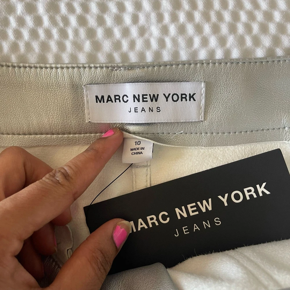 NWT Marc New York Women's Faux Leather Silver A-Line Mini Skirt - Size 10 โจ Brand: Marc New York ๐ Style: A-Line Mini Skirt ๐จ Color: Metallic Silver ๐ Size: 10 (Women's) ๐ Condition: NWT (New With Tags) Features: Chic A-line silhouette โ flattering and modern Sleek faux leather with a metallic silver finish for a bold, fashion-forward look Zipper closure in back for easy wear Fully lined for comfort Perfect statement piece for nights out, events, or elevated streetwear ๐๏ธ Brand new, never worn, with original tags attached! ๐ Ships quickly from a smoke-free, pet-free home