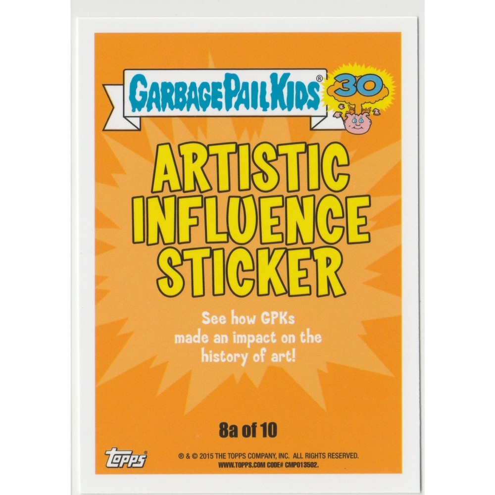 Marcel Masterpiece #8a Garbage Pail Kids GPK 2015 30th Anniversary Series Marcel Masterpiece #8a of 10 Topps Garbage Pail Kids GPK 2015 30th Anniversary Series Artistic Influence Sticker subset Marcel Duchamp personal stock photos centering of card may vary compared to listed images