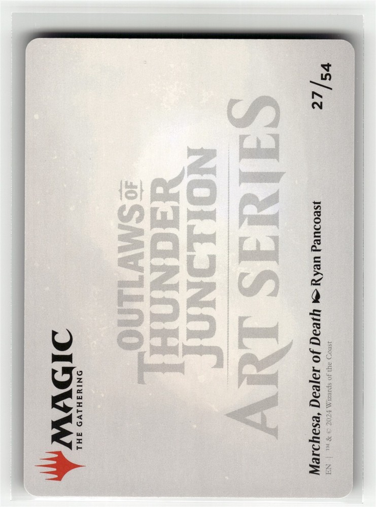 Note: All Listings are for ONE card. The number in the title is the card number. Price: $1.75 Condition: This card was sleeved directly from opening the pack or box and is in mint condition. Mint condition does not apply to centering or refer to grading eventuallities. (Near mint or better) Game: Magic: The Gathering Card Name: Marchesa, Dealer of Death Art Card (Gold-Stamped Signature) Finish: GOLD STAMP Set: Outlaws of Thunder Junction Set Code: AOTJ Card Number: 27 Rarity: Special To make it simple, all cards listings are of the same condition. Different conditions are listing under a seperate listing. (See below link for more listings of more conditions if interested): More listings of this card in another condition, different set or different finish/parallel: --- Marchesa, Dealer of Death --- More listings from this set: --- Outlaws of Thunder Junction --- All listings from this game: --- Magic: The Gathering --- We highly recommend the upgraded shipping option of "Ground Advantage" if you would like the best protection for your shipping option. Please take serious consideration into benefits of the "Ground Advantage" shipping option. +++ "Ground Advantage" has added weight minimum limitations and dimensions allow us to further protect your cards. +++ "Ground Advantage" bubble mailer adds yet another layer of added security. +++ "Ground Advantage" has better tracking. +++ "Ground Advantage" has more realistic time for delivery estimates and stays within that expected time frame for delivery. - - - A downside is that it is more expensive Our experience with "eBay Standard Envelope for Trading Cards, Stamps, Postcards & Coins up to $20" for your information. - - - "eBay Standard Envelope for Trading Cards, Stamps, Postcards & Coins up to $20" can only provide as much insulation and protection as we are afforded within very limited requirements. - - - "eBay Standard Envelope for Trading Cards, Stamps, Postcards & Coins up to $20" time estimates are best guesses at best (from eBay, not us). - - - "eBay Standard Envelope for Trading Cards, Stamps, Postcards & Coins up to $20" tracking may or may not reflect correctly as it depends on scans in machines and envelope orientation for this machine (USPS, not us). - - - We cannot make any more adjustments for "eBay Standard Envelope for Trading Cards, Stamps, Postcards & Coins up to $20" that will make things more secure, timely, or traceable. +++ The upside is it is more cost effective. ** Note on TCG Pictures: Scans are representations of cards. We scan one card per listing which may or may not be the card that remains or is sent. We have no problem scanning all available cards for you to choose from if you would like to see all available cards for that listing ahead of purchase. Scans are all done with penny sleeves on. If you see scratching and it is labeled as Near Mint, it is from the sleeve. No Near Mint cards will have scratching unless it was missed completely. If it was missed, our team will more than likely catch it on the shipping and notify you before sending. In the case that it is still missed, please notify us for a full return and refund. Scans are done by Commons and Uncommons, by hand. Do not use this as a grading assumption as we are not graders. If you receive your card and don't feel that we have listed it as the condition it was advertised in, feel free to return the card for a full refund no matter the reason. If this is a more expensive card and you would like better, closer, angled, or slightly different scan or picture... feel free to send me a message and we will be happy to pluck all of the variations and send pictures of each. If you receive your card and don't feel that we have listed it as the condition it was advertised in, feel free to return the card for a full refund no matter the reason. We may have labeled it incorrectly. We may have sent the wrong version accidentally. We view the card in a different condition standard than you. ** Note on how to read the title for Trading Card Games (Sports and Novelty Card May be Different). Magic the Gathering = CardName (CardNumber) SetName SetCode (Base/Foil/Special) Condition (ShortGameNameforInventory) eBay Card Condition Guidelines: Please refer to the below link for guidance on how card condition labeling is done. Obviously, this is subjective in nature and these conditions are subjective to begin with. If you are looking for specific conditions for grading purposes, we do not promise any specific grades for cards with any specific conditions. Cards that we have labeled as "NM+" have gone directly into sleeves after opening boxes / packs and were opened by Commons and Uncommons LLC. https://pages.ebay.com/cardconditions/ Shipping Details: All eBay Standard Envelope for Trading Cards can be replaced with other USPS shipping options. This replaces a normal white envelope with a 7 x 9 x 1 bubble mailer. All eBay Standard Envelope for Trading Cards and USPS Ground Advantage can be replaced with expedited shipping. Single Cards Under $20: · eBay Standard Envelope for Trading Cards, Stamps, Postcards & Coins up to $20 (3 to 6 business days). · Cards are sleeved, put into semi-rigid card loaders, and taped to promote moisture resistance, wrapped in packing slip and put into a normal envelope. Multiple cards may go into one loader depending on card type, card thickness and weight. · If special arrangements need to be made so there is no combined shipping, please contact us ahead of the purchase. · Card Saver 1 can be replaced with Top Loaders if desired. There will be an up-charge depending on the card amount purchased. Singly priced cards under $20 in which a combined order is less than $50. · eBay Standard Envelope for Trading Cards, Stamps, Postcards & Coins up to $20 (3 to 6 business days). · We will always attempt to fit larger orders in smaller envelope counts to reduce my shipping costs. · If special arrangements need to be made so there is no combined ship