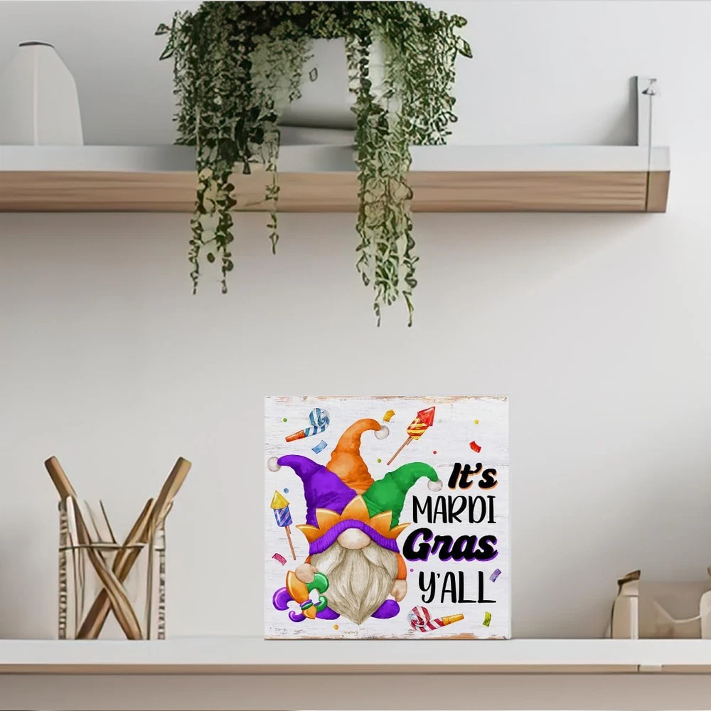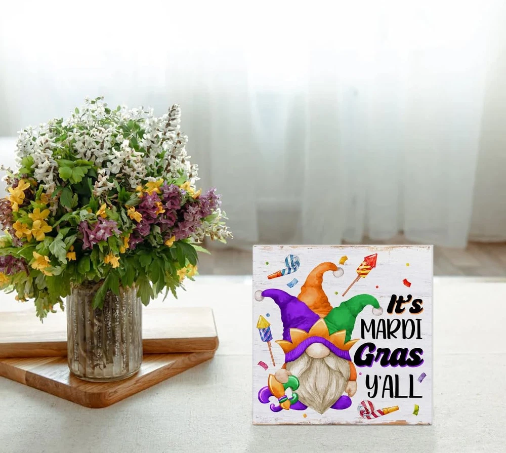 Mardi Gras Decor Mardi Gras Decorations Mardi Gras Gnome Wooden Sign Rustic Deco