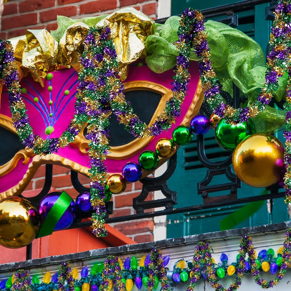 Menu Other Items Feedbacks About Us Contact Us Add To Favorites Mardi Gras Garland Decorations,50Ft Glitter Tinsel Garland Decor for Tree Mantle Bedroom Office Classroom Party Indoor Outdoor Holiday Home Green Gold Purple Unique Material: The Mardi Gras garland is made of PVC material, shiny, reliable and lightweight, the inside of the tinsel contains metal wire, easy to change shape and length according to your needs, simple to carry and store. Classic Design: This Mardi Gras decorations contain classic elements of Mardi Gras Day, such as green gold purple colors, beautiful and shiny appearance, good to bring festival atmosphere.It's full of cheerful feeling in appearance, can highlight the warm atmosphere of the festival after being applied. Long Size:The Mardi Gras decor size approx: 50 feet / 15 meters, width 3.5 inches / 9 cm.Longer size can decorate more scenes and garner more compliments. Multifunctional use:You can hang this Mardi Gras garland on walls, doors, ceilings, tables, stairs, windows, branches, etc. The tinsel garland have metal wires inside, and you can change the shape and length according to your needs. Perfect Gift: At Mardi Gras Day, it's the perfect garland gift to give to your friends and family, decorating their lives and homes and wishing them a wonderful holiday. Mardi Gras Garland Decorations,33Ft Glitter Tinsel Garland Decor for Tree Mantle Bedroom Office Classroom Party Indoor Outdoor Holiday Home Green Gold Purple Item Specification Item model number Mardi Gras Garlands Manufacture Year 2025 Is Artificial Garland Yes Material Polyvinyl Chloride (PVC) Style 4th of July tree decorations Item Weight 8.4 ounces Color Multi Color Shape Star Item Length 590 Inches Is Lighted No Package Dimensions 9.41 x 4.06 x 4.02 inches Size 50 Ft FREE SHIPPING We are always working hard to ensure your package arrives as soon as possible. Please understand that some factors like weather, high postal traffic, and the performance of shipping companies are outside of our control. We offer free shipping to the lower 48 states. We do not accept P.O. Boxes. Please provide a physical address. If you have a problem or question regarding your transaction please contact us immediately. We will work with you to resolve any problem you may have. Thank you
