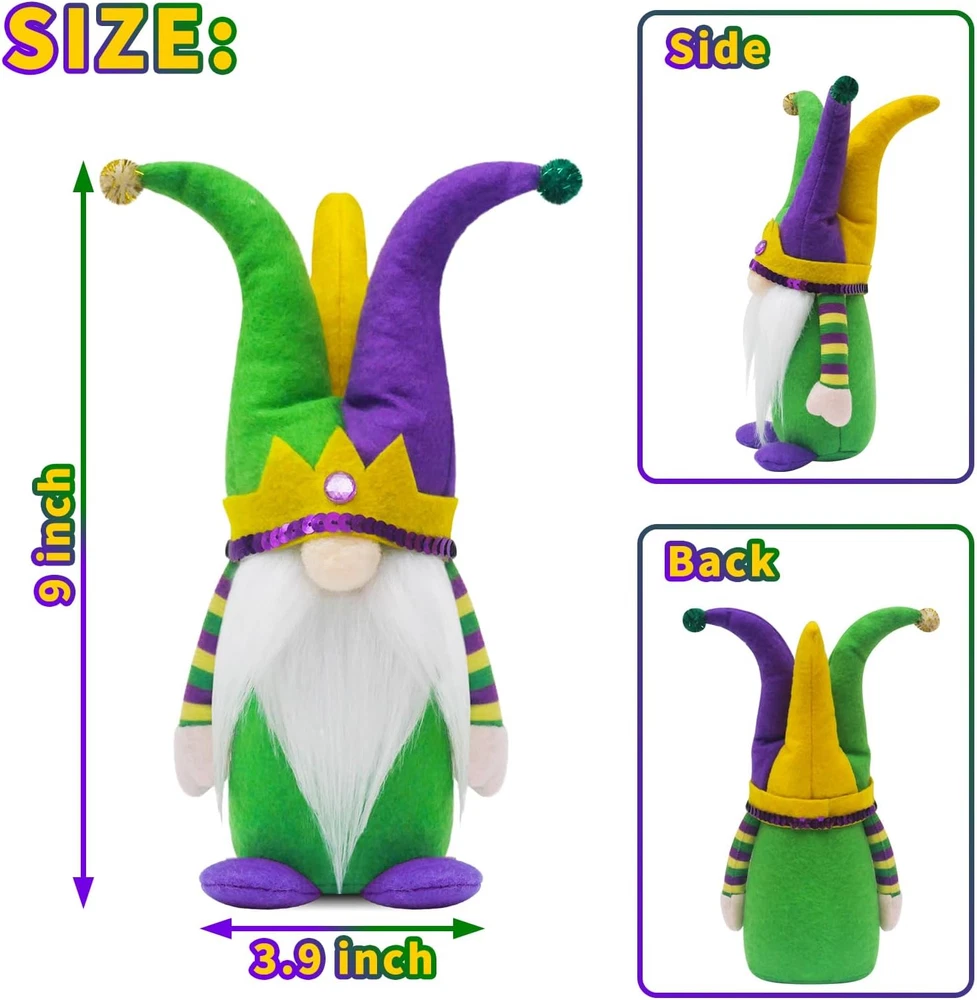Store New Arrivals Add to Favorite View Feedback Contact Fast deliveries to the customer's home Quality customer service John Make the customers happy! Mardi Gras Gnomes Party Decorations, 3 Pack Mardi Gras Beads, Mask Gnomes Plush Decor, New Orleans Mardi Gras Party Tiered Tray Decor, Mardi Gras Home Office Party Supply Description 【Mardi Gras Gnomes Sets】These adorable Mr.and Mrs. Mardi gras gnomes plush with jester hat fleur de lis sign mardi gras beads necklaces create the festive touch on your mardi gras holiday. And gnomes will bring us good luck, happiness, warmth and a little magical to your home. 【Ideal Mardi Gras Gift】Well crafted mardi gras Gnomes plush is an ideal mardi gras gifts,and other holiday. The adorable mardi gras jester hat are perfect for spreading holiday happiness. Unique gnomes design with fleur de lis sign and mardi gras Beads necklaces are 100% match mardi gras decorations mardi gras theme party decorations mardi gras tiered tray decor masquerade party decorations mardi Gras table decorations new orleans decor mardi Gras home decor. 【Mardi Gras Party Decorations】The mardi gras gnomes sets will be an ideal addition to mardi gras holiday Party , and the mardi gras centerpieces for Party tables. Fleur de Lis sign and mardi gras beads necklaces can easily make your main centerpiece of your mardi gras theme decorations,mardi gras table decorations.Perfect for displaying on a table, shelf or mantel, fireplace. Unique and cute style will bring family happiness. 【Premium Material & Handcrafted】The mardi gras Gnomes are made of plush and felt by professional artisans.The purple yellow and green hats also boots are made of Sunday Angora furry, very soft touch. 【Weighted Base & Poseable】 Each mardi gras gnome decor has a built-in soft iron wire at the top ear hat. Flexiable ears make you can position it as you wish. Their boots are plain to supoort stand on their own, and can be put on anywhere in the home. Fire place, mantle , kitchen, living room. Product Description Item Weight 11.7 ounces Item model number PM23157M Product Dimensions 10 x 5 x 4 inches ABOUT US We offer the best prices around on high quality products. Our E-store includes media such as books, movies, music and games while offering electronics, toys, sporting apparel, clothing, tools, general home, garden items and more. SHIPPING We are always working hard to ensure your package arrives as soon as possible. Please understand that some factors like weather, high postal traffic, and the performance of shipping companies are outside of our control. We offer free shipping to the lower 48 states and ship within 2 business days of payment, usually sooner. We do not accept P.O. Boxes. Please provide a physical address. For shipping outside of the continental USA, we only use eBay's Global Shipping Program. The item is shipped to KY and then sent to the rest of the world. International customers are responsible for all duties and taxes. Continue to 'check out' to calculate costs for shipping the item to your country. Messages regarding eBay's Global Shipping Program MUST be directed at eBay EXCLUSIVELY. RETURNS We offer a 30-Day Return Policy on items in which you are not completely satisfied with. You have the option of a full-refund or an exchange of the item. No returns are available on items shipped outside of the USA PAYMENT We accept PayPal. CONTACT US This page content is yet to come Please ad us to your favorite seller and visit again later Thank You CUSTOMER SATISFACTION We try our very best to make sure every customer is completely satisfied. If there's a problem, message us! We're happy to help. WE ACCEPT