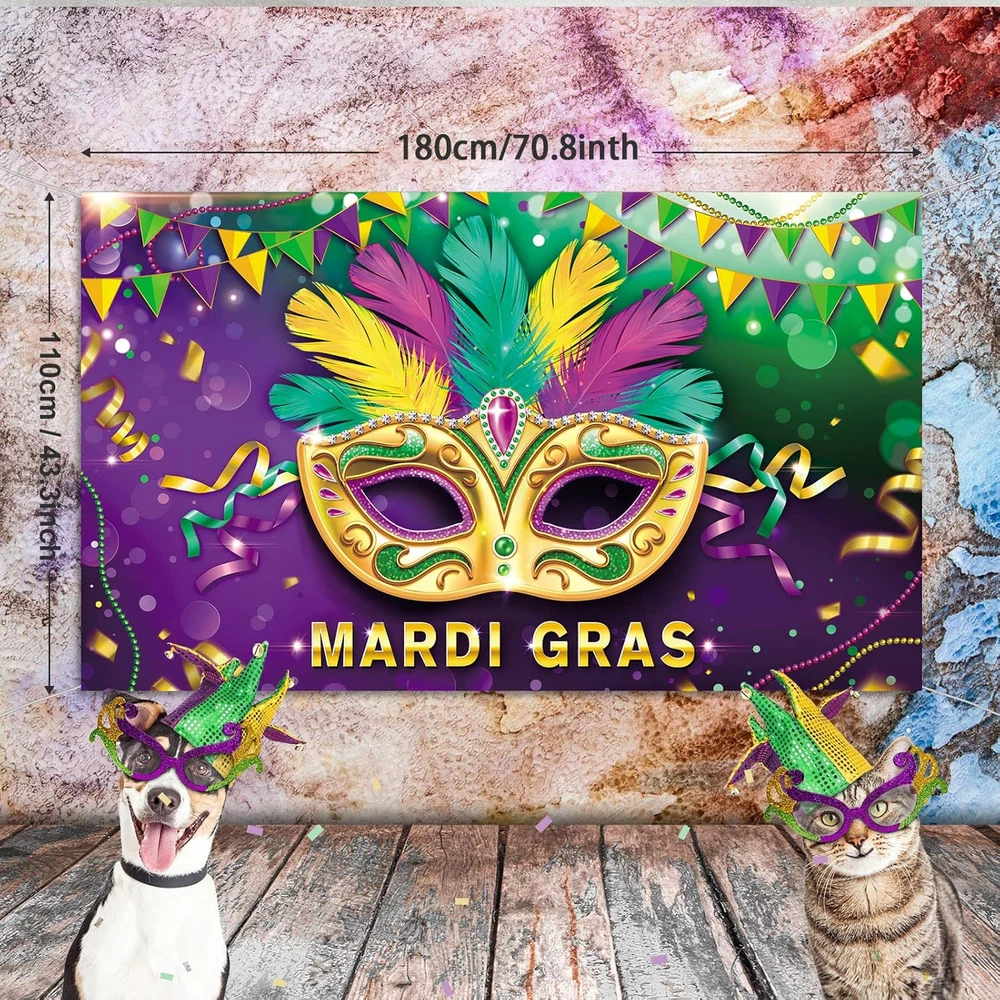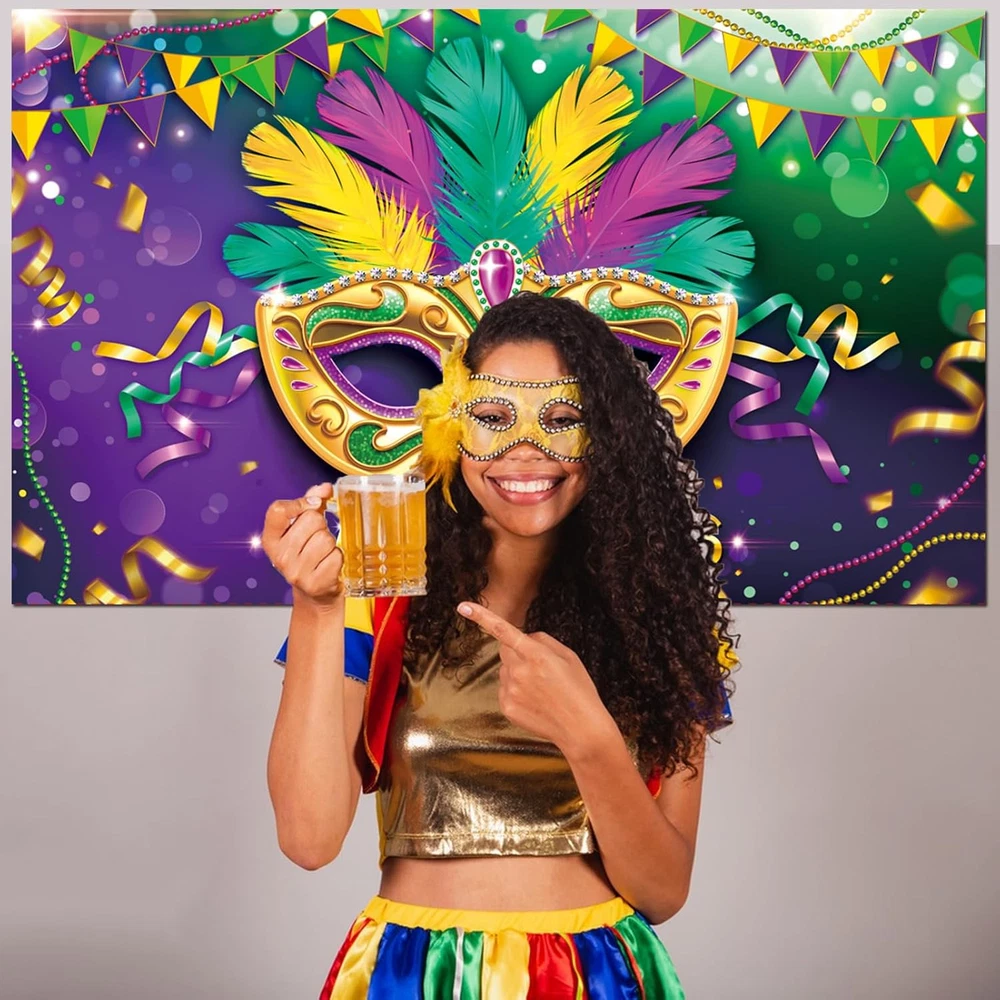 Store New Arrivals Add to Favorite View Feedback Contact Fast deliveries to the customer's home Quality customer service John Make the customers happy! Mardi Gras Party Photography Backdrop, Colorful Mask Carnival Masquerade Birthday Party Backdrop Banner, Photo Booth Background for Birthday Bachelorette Party Decorations, 71 X 43 Inches Description Light up your Mardi Gras decorations with this realistic eye-catching backdrop! The banner features a large colorful masquerade mask, and "MARDI GRAS" lettering with gold, purple and green beads, and other Mardi gras themed patterns, easy to bring a New Orleans touch to the party! Made of durable and lightweight polyester fabric, washable and tear-resistant, easy to handle or store for future use. Hang it up through 4 grommet holes in the corners with the included 20 ft long rope or put it on with tape/hook/push pins (not included). Measures 180 x 110 cm / 71 x 43 inches, large enough for the Mardi Gras party decorations and the photography background at your party, adding an extra touch to the carnival party. Warm Tips: If there are creases, please slightly iron it or unfold it ahead of the party. Thick Durable Polyester Fabric Material: This mardi gras decorations is made of thick durable polyester fabric. It is seamless, light and easy to wash. No color fading. Premium material of this fabric will also make you feel comfortable to touch. Mardi Gras Backdrop Banner Design: launuo Mardi Gras themed backdrop is a well designed backdrop with different kinds of graphics. The length of this banner is about 71 inches, width is about 43 inches. It is big enough to be used in big birthday party event to make your party more meaningful and enjoyable. Responsible After Sales Service: Launuo is determined to work hard to improve so as to provide good shopping experience with good quality item product and good after sales service. We will always be here to help you whenever you need our assistance. Item model number LN0062 Color Colorful Product Dimensions 70.87 x 48 x 0.01 inches Country of Origin China Item Weight 0.17 Kilograms Occasion Bachelorette Party, Wedding, Mardi Gras, Birthday Size 71 x 43 inch ABOUT US We offer the best prices around on high quality products. Our E-store includes media such as books, movies, music and games while offering electronics, toys, sporting apparel, clothing, tools, general home, garden items and more. SHIPPING We are always working hard to ensure your package arrives as soon as possible. Please understand that some factors like weather, high postal traffic, and the performance of shipping companies are outside of our control. We offer free shipping to the lower 48 states and ship within 2 business days of payment, usually sooner. We do not accept P.O. Boxes. Please provide a physical address. For shipping outside of the continental USA, we only use eBay's Global Shipping Program. The item is shipped to KY and then sent to the rest of the world. International customers are responsible for all duties and taxes. Continue to 'check out' to calculate costs for shipping the item to your country. Messages regarding eBay's Global Shipping Program MUST be directed at eBay EXCLUSIVELY. RETURNS We offer a 30-Day Return Policy on items in which you are not completely satisfied with. You have the option of a full-refund or an exchange of the item. No returns are available on items shipped outside of the USA PAYMENT We accept PayPal. CONTACT US This page content is yet to come Please ad us to your favorite seller and visit again later Thank You CUSTOMER SATISFACTION We try our very best to make sure every customer is completely satisfied. If there's a problem, message us! We're happy to help. WE ACCEPT
