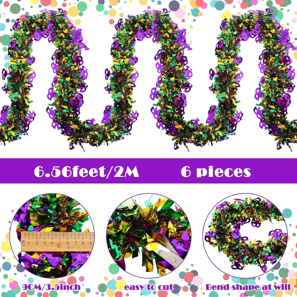 Store New Arrivals Add to Favorite View Feedback Contact Fast deliveries to the customer's home Quality customer service John Make the customers happy! Mardi Gras Tinsel Garlands Glitter Mixed Color Metallic Tinsel Chunky Glittering Tinsel for Mardi Gras Party Decoration, Gold, Green and Purple Mixed (39 Ft) Description Durable and reliable: this Mardi Gras chunky tinsel garland, made of quality PVC material with a shiny surface, is light and durable, suitable for both indoor and outdoor decorations, and brings a happy atmosphere Create a festival atmosphere: this carnival tinsel garland features strips of gold, green, and purple tinsel; Its shining tinsel and classic colors will give any mantel or banister a fun look your guests will love Wide applications: you can these shining foil wreath tinsel garlands along the walls, staircase railing, or anywhere else in the house, to complete the rest of your gold, green and purple Mardi Gras decorations with them Measurement: each chunky glittering tinsel garland is about 39 ft long, long enough for you to add your own ribbon, ornaments, and decorative pieces to make a Mardi Gras garland that stands out What you get: the package includes 39 ft chunky tinsel garlands in gold, green, and purple, enough length for you to fill your holiday decorations, and add decorative shine to your home, or share with your neighbors or friends Features: Shining festival decorations: This carnival tinsel garland features strips of gold, green, and purple tinsel. Its shining tinsel and classic colors will give any mantel or banister a fun look your guests will love. Wide range of applications: These shining foil wreath tinsel garlands can be applied for many occasions. You can hang them on the ceiling, branches, walls, etc., and what's more, you can turn them into shapes that suit your holiday decorating idea. Specifications: Material: PVC Tinsel garland length: approx. 39 ft Color: gold, green, purple Package includes: 1 x Chunky tinsel garland Notes: Manual measurement, please allow little size errors. Winding risk, please keep away from children. Item model number LT--4437 Material Tinsel, Polyvinyl Chloride (PVC) Country of Origin China Item Weight 8.4 ounces Item Length 468 Inches Package Dimensions 11.46 x 9.65 x 1.06 inches Size 39 ft ABOUT US We offer the best prices around on high quality products. Our E-store includes media such as books, movies, music and games while offering electronics, toys, sporting apparel, clothing, tools, general home, garden items and more. SHIPPING We are always working hard to ensure your package arrives as soon as possible. Please understand that some factors like weather, high postal traffic, and the performance of shipping companies are outside of our control. We offer free shipping to the lower 48 states and ship within 2 business days of payment, usually sooner. We do not accept P.O. Boxes. Please provide a physical address. For shipping outside of the continental USA, we only use eBay's Global Shipping Program. The item is shipped to KY and then sent to the rest of the world. International customers are responsible for all duties and taxes. Continue to 'check out' to calculate costs for shipping the item to your country. Messages regarding eBay's Global Shipping Program MUST be directed at eBay EXCLUSIVELY. RETURNS We offer a 30-Day Return Policy on items in which you are not completely satisfied with. You have the option of a full-refund or an exchange of the item. No returns are available on items shipped outside of the USA PAYMENT We accept PayPal. CONTACT US This page content is yet to come Please ad us to your favorite seller and visit again later Thank You CUSTOMER SATISFACTION We try our very best to make sure every customer is completely satisfied. If there's a problem, message us! We're happy to help. WE ACCEPT