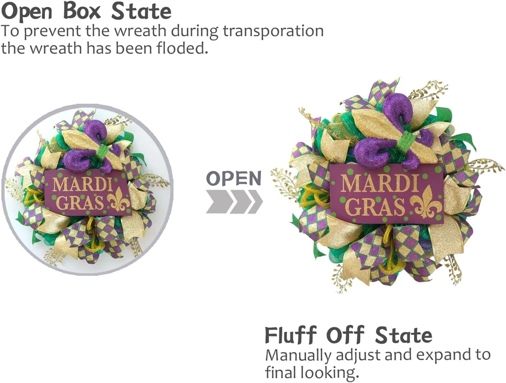 Store New Arrivals Add to Favorite View Feedback Contact Fast deliveries to the customer's home Quality customer service John Make the customers happy! Mardi Gras Wreaths for Front Door, 16" Artificial Glitter Bows Gold Leaves Mesh Wreath with Mardi GPAS Sign for Front Door Indoor Outdoor Decorations Description 【Mardi Gras Wreath】The Mardi Gras Wreath Decoration features gold, green, and purple ornaments and gold tinsel; with a variety of sizes.The Mardi Gras Wreath create a rich and diverse texture and making it an eye catching decorative piece for your celebrations. 【Durable & Reusable】Each wreath is handmade with great attention to detail and craftsmanship and has a design quality, sturdy and durable, can be used for a long time. 【Easy to Use】This Mardi Gras wreath can be easily mounted and secured with a string included in the package; Whether you want to hang it on your doors, entryway, fireplace, or in your living room, the wreath provides you with a simple installation process. 【Various Applications】 this Mardi Gras wreath is suitable for diverse decorations; thanks to its ideal size and festive color palette, it can be applied to adorn any part of your home including your front door, back door, porch, entryway, fireplace, and living room, adding festive cheer. 【Best service】It is our greatest desire and pleasure to offer you our Full Presence and Best Support. If you have any questions about our product. Please feel free to contact our customer service, we will reply within 24 hours. Product Description Mardi Gras Mesh Wreath Add to Cart Add to Cart Add to Cart Add to Cart Add to Cart Add to Cart Add to Cart Customer Reviews 4.0 out of 5 stars 1 4.0 out of 5 stars 1 — — — — 4.5 out of 5 stars 42 Price $38.99 $ 38 . 99 $26.99 $ 26 . 99 $35.99 $ 35 . 99 $16.99 $ 16 . 99 $15.99 $ 15 . 99 $12.99 $ 12 . 99 $29.99 $ 29 . 99 SIZE 18" 16" 24" wooden board is 11.6 inches wooden board is 11.6 inches wooden board is 11.6 inches 18" Color Yellow&Green&Purple Yellow&Green&Purple Yellow&Green&Purple Yellow&Green&Purple Yellow&Green&Purple Yellow&Green&Purple Gold Material Mesh,Fabric Mesh,Fabric Plastic,Fabric,Paper,Wood Wood, Plastic,Fabric Wood, Plastic,Fabric Wood, Plastic,Fabric Plastic,Fabric,Paper Season Mardi Gras Mardi Gras Mardi Gras Mardi Gras Mardi Gras Mardi Gras Winter Mounting Type Door+Wall Door+Wall Door+Wall Door+Wall Door+Wall Door+Wall Door+Wall Item Weight 1.34 pounds Shape Round Size 16" Product Dimensions 4"D x 16"W x 16"H ABOUT US We offer the best prices around on high quality products. Our E-store includes media such as books, movies, music and games while offering electronics, toys, sporting apparel, clothing, tools, general home, garden items and more. SHIPPING We are always working hard to ensure your package arrives as soon as possible. Please understand that some factors like weather, high postal traffic, and the performance of shipping companies are outside of our control. We offer free shipping to the lower 48 states and ship within 2 business days of payment, usually sooner. We do not accept P.O. Boxes. Please provide a physical address. For shipping outside of the continental USA, we only use eBay's Global Shipping Program. The item is shipped to KY and then sent to the rest of the world. International customers are responsible for all duties and taxes. Continue to 'check out' to calculate costs for shipping the item to your country. Messages regarding eBay's Global Shipping Program MUST be directed at eBay EXCLUSIVELY. RETURNS We offer a 30-Day Return Policy on items in which you are not completely satisfied with. You have the option of a full-refund or an exchange of the item. No returns are available on items shipped outside of the USA PAYMENT We accept PayPal. CONTACT US This page content is yet to come Please ad us to your favorite seller and visit again later Thank You CUSTOMER SATISFACTION We try our very best to make sure every customer is completely satisfied. If there's a problem, message us! We're happy to help. WE ACCEPT