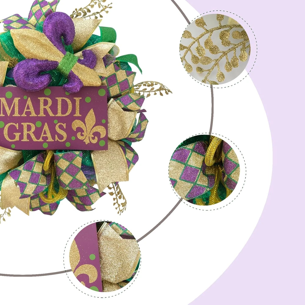 Store New Arrivals Add to Favorite View Feedback Contact Fast deliveries to the customer's home Quality customer service John Make the customers happy! Mardi Gras Wreaths for Front Door, 16" Artificial Glitter Bows Gold Leaves Mesh Wreath with Mardi GPAS Sign for Front Door Indoor Outdoor Decorations Description 【Mardi Gras Wreath】The Mardi Gras Wreath Decoration features gold, green, and purple ornaments and gold tinsel; with a variety of sizes.The Mardi Gras Wreath create a rich and diverse texture and making it an eye catching decorative piece for your celebrations. 【Durable & Reusable】Each wreath is handmade with great attention to detail and craftsmanship and has a design quality, sturdy and durable, can be used for a long time. 【Easy to Use】This Mardi Gras wreath can be easily mounted and secured with a string included in the package; Whether you want to hang it on your doors, entryway, fireplace, or in your living room, the wreath provides you with a simple installation process. 【Various Applications】 this Mardi Gras wreath is suitable for diverse decorations; thanks to its ideal size and festive color palette, it can be applied to adorn any part of your home including your front door, back door, porch, entryway, fireplace, and living room, adding festive cheer. 【Best service】It is our greatest desire and pleasure to offer you our Full Presence and Best Support. If you have any questions about our product. Please feel free to contact our customer service, we will reply within 24 hours. Product Description Mardi Gras Mesh Wreath Add to Cart Add to Cart Add to Cart Add to Cart Add to Cart Add to Cart Add to Cart Customer Reviews 4.0 out of 5 stars 1 4.0 out of 5 stars 1 — — — — 4.5 out of 5 stars 42 Price $38.99 $ 38 . 99 $26.99 $ 26 . 99 $35.99 $ 35 . 99 $16.99 $ 16 . 99 $16.99 $ 16 . 99 $12.99 $ 12 . 99 $29.99 $ 29 . 99 SIZE 18" 16" 24" wooden board is 11.6 inches wooden board is 11.6 inches wooden board is 11.6 inches 18" Color Yellow&Green&Purple Yellow&Green&Purple Yellow&Green&Purple Yellow&Green&Purple Yellow&Green&Purple Yellow&Green&Purple Gold Material Mesh,Fabric Mesh,Fabric Plastic,Fabric,Paper,Wood Wood, Plastic,Fabric Wood, Plastic,Fabric Wood, Plastic,Fabric Plastic,Fabric,Paper Season Mardi Gras Mardi Gras Mardi Gras Mardi Gras Mardi Gras Mardi Gras Winter Mounting Type Door+Wall Door+Wall Door+Wall Door+Wall Door+Wall Door+Wall Door+Wall Item Weight 1.34 pounds Shape Round Size 16" Product Dimensions 4"D x 16"W x 16"H ABOUT US We offer the best prices around on high quality products. Our E-store includes media such as books, movies, music and games while offering electronics, toys, sporting apparel, clothing, tools, general home, garden items and more. SHIPPING We are always working hard to ensure your package arrives as soon as possible. Please understand that some factors like weather, high postal traffic, and the performance of shipping companies are outside of our control. We offer free shipping to the lower 48 states and ship within 2 business days of payment, usually sooner. We do not accept P.O. Boxes. Please provide a physical address. For shipping outside of the continental USA, we only use eBay's Global Shipping Program. The item is shipped to KY and then sent to the rest of the world. International customers are responsible for all duties and taxes. Continue to 'check out' to calculate costs for shipping the item to your country. Messages regarding eBay's Global Shipping Program MUST be directed at eBay EXCLUSIVELY. RETURNS We offer a 30-Day Return Policy on items in which you are not completely satisfied with. You have the option of a full-refund or an exchange of the item. No returns are available on items shipped outside of the USA PAYMENT We accept PayPal. CONTACT US This page content is yet to come Please ad us to your favorite seller and visit again later Thank You CUSTOMER SATISFACTION We try our very best to make sure every customer is completely satisfied. If there's a problem, message us! We're happy to help. WE ACCEPT