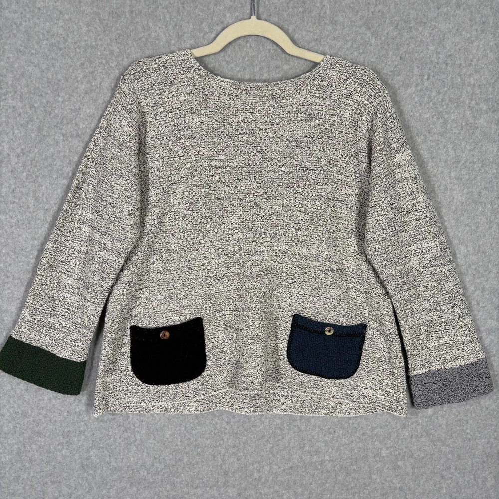 Margaret Winters Sweater Womens Small Gray Cream Pockets Lagenlook Artsy Granny $128 MSRP JAZZY Sweater by Margaret Winters: A natural heathered color body with Fall color pockets and cuffs. This sweater top can be worn front side/back side. Either side is the right side. The sweater is cotton blend knit and made in NYC. Machine wash cool, lay flat to dry. EXCELLENT Pre-owned condition: minimal to no signs of wear, no stains or holes Possibly brand new. No signs of wear. SKU 5812 **Please see all pictures for full item condition and details** - Ships Same/Next Day, Professional Seller, Offers Welcome, Like or watch for price drops - Item in photos is exact item you will receive - I list new items daily, be sure to browse my store/closet for more items - Bundle pricing and combined shipping available for additional savings - Feel free to send a message