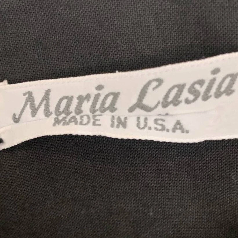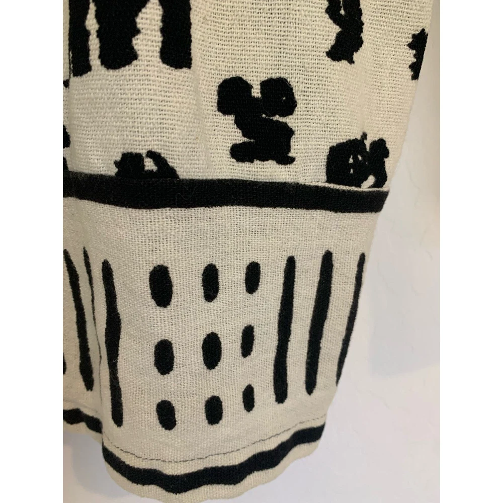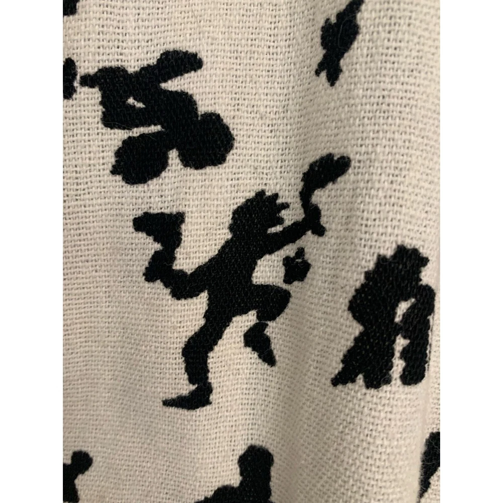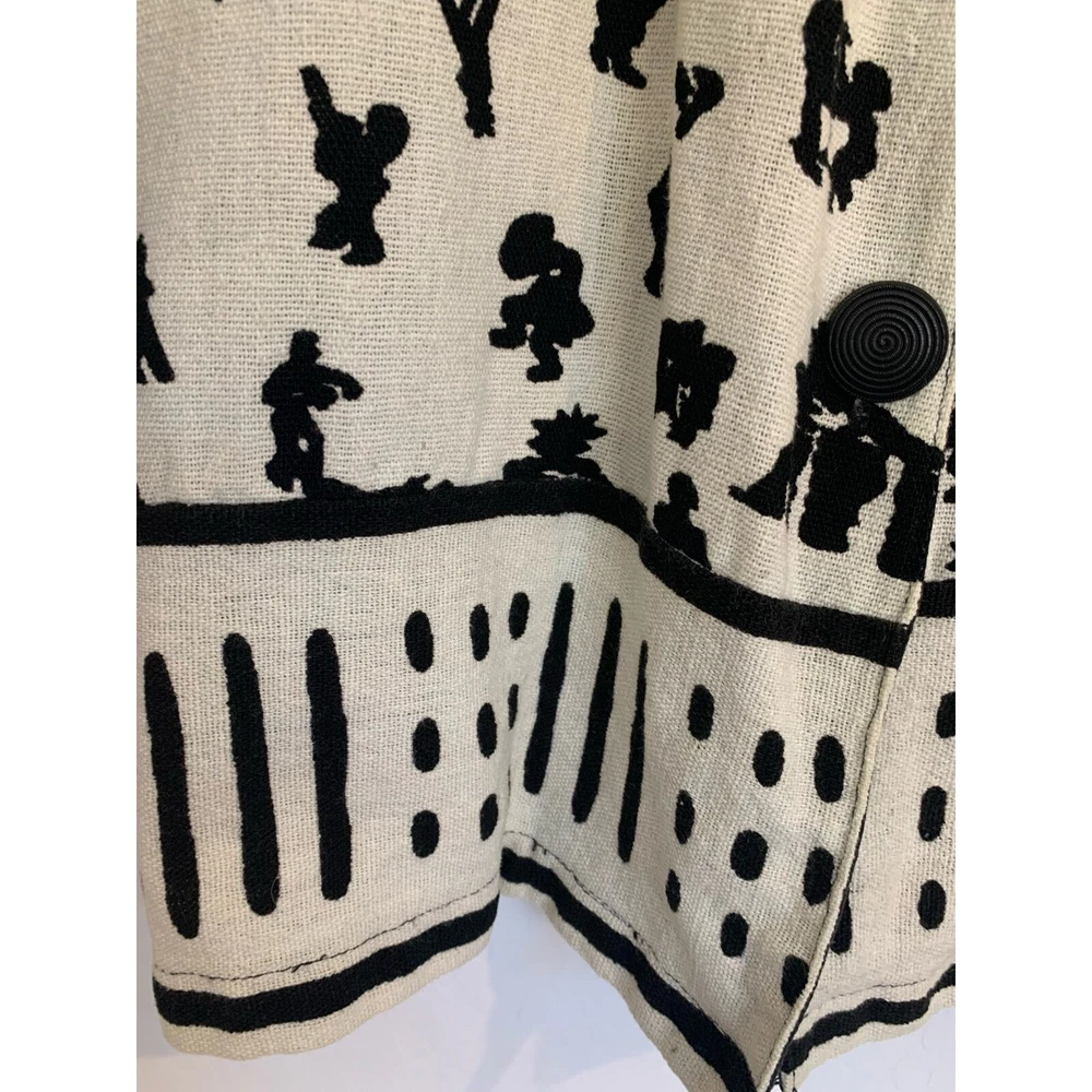 Maria Lasia Unique Womens Top Linen Feel Cream Black Folk Print Button Front Print resembles Native Folklore Symbols Boho One of kind piece No size or fabric content tags Looks and feels like Linen Made in USA Measurements Armpit to Armpit 21 in Length 26 in Standard Sizing = Large Machine washable Excellent Pre Owned Condition