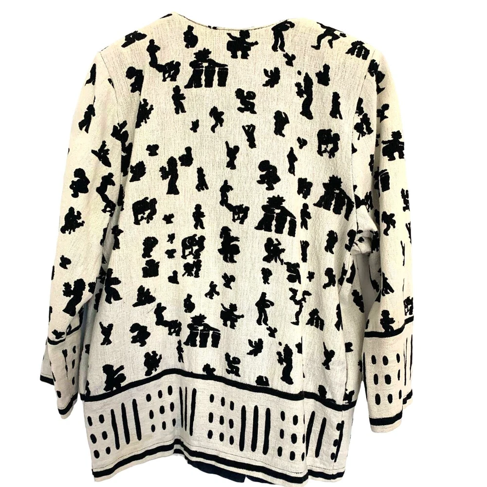 Maria Lasia Folk Print Top Large Black Ivory Jacket Unique Womens Boho Artsy USA