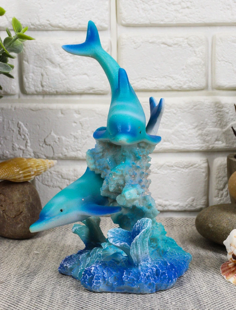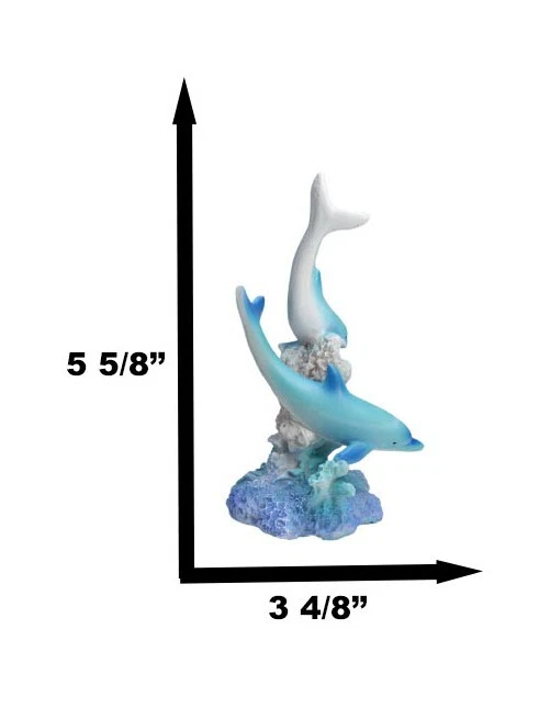 • This Marine Life Two Dolphins Statue is 5.75" tall, 3.25" long and 2.75" deep approximately. • This Marine Life Two Dolphins Statue is made of designer composite resin, hand painted and polished. Color Tone may vary • The Ocean is filled with wonderful creatures and the dolphin is one of the most intelligent creature of all. This sculpture highlights two dolphins playing together around a coral reef under the deep blue sea. Ebros Marine Life Ocean Two Blue Dolphins Swimming Around Coral Reef Statue Sea World Video will open in a new window Using the mobile app? Copy this link into your browser: