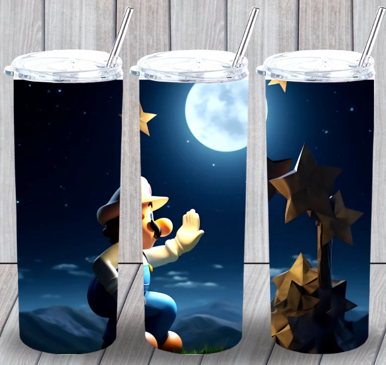 Character: Mario Type: Tumbler Model: 1 Theme: Cartoons, TV & Movie Characters, Love & Hearts Material: BPA-Free Plastic, Metal, Plastic, Silicone, Stainless Steel, Steel Keeps Cold For: 12 hrs Item Height: 9 in Item Width: 3 in Department: Girls, Kids, Adults Keeps Hot For: 6 hrs Features: Decorated, Insulated, Spill Proof, Suitable for Hot Beverages, With Lid, With Straw Personalization Instructions: Add a name to your tumbler here. Country/Region of Manufacture: United States Manufacturer Warranty: No Warranty Offered Brand: Unbranded Beverage Type: Hot or Cold Number of Items in Set: One Tumbler. One Lid. One Straw. Character Family: Mario Capacity: 20oz Care Instructions: Handwash the cup with soap; lids and straws are dishwasher-safe. Personalize: Yes Color: Multicolor Custom Bundle: Yes Item Weight: 0.75 lb Lid Type: Slide Lock