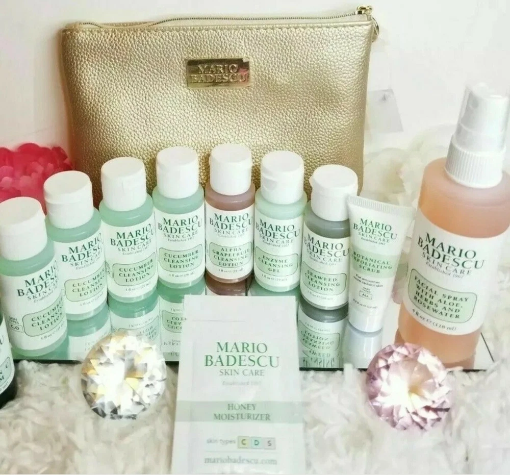Mario Badescu 11 Piece Skincare Set With Bag Set Includes: • 1x - Mario Badescu Facial Spray With Aloe, Herbs And Rosewater. Full Size: 118 ml. / 4 oz. • 4x - Mario Badescu Cucumber Cleansing Lotion. Travel Size: 29 ml. / 1 oz. Each. • 1x - Mario Badescu Enzyme Cleansing Gel. Travel Size: 29 ml. / 1 oz. • 1x - Mario Badescu Alpha Grapefruit Cleansing Lotion. Travel Size: 29 ml. / 1 oz. • 1x - Mario Badescu Seaweed Cleansing Lotion. Travel Size: 29 ml. / 1 oz. • 1x - Mario Badescu Botanical Exfoliating Scrub. Travel Size: 14 ml. / .5 oz. • 1x - Mario Badescu Honey Moisturizer Packet. 3 g. / .10 oz. • 1x - Mario Badescu Gold Makeup Bag. A great way to try out this company's various products before purchasing the full size ones. Also great for travel! BRAND NEW!! NEVER OPENED USED OR TESTED!! 100% AUTHENTIC AS ALWAYS!!! ALL OF MY ITEMS ARE GENUINE / AUTHENTIC! ITS AGAINST EBAY POLICY TO SELL COUNTERFEIT GOODS, PLUS THEY'RE EXTREMELY DANGEROUS TO USE!! (Be EXTREMELY cautious of those "Too Good To Be True" priced items that Ebay is flooded with! These dangerous counterfeit products contain harmful substances like cyanide, arsenic, lead, mercury, feces, urine, and even rat droppings!!). If it's too good to be true..... It most likely Is!! Be sure to research the Product AND the Seller! PLEASE Be Sure About The Item And Ask Any Questions You May Have Before Purchasing. Ebay DOES NOT Refund The Processing Fee Once Payment Has Been Made And I Lose That Money On Cancelled Orders. A Note On Any Beauty Products: I only sell brand new, unused beauty products. This means that the products I sell have NEVER been used, sampled, tested, or swatched. They have never been opened unless briefly for photos. All my items are guaranteed to be 100% authentic as I only sell items acquired personally from my own purchases at national retail chains, (Sephora, Ulta) high-end department stores, (Nordstrom, Neiman) and other authorized sources (Boxycharm, Ipsy). I DO NOT purchase items from third parties to resell. This way I can guarantee the authenticity and track the freshness of my items. I am against selling used and or counterfeit beauty products, it is against eBay policy, unethical, un-hygienic and can be harmful. Please read entire description and disclaimers and review all photos as they are part of the description and detail any damage not noted, before purchasing! Information is provided in order to have as smooth transaction as possible. The description and photos are to be helpful, so please read details of the item you are bidding/purchasing,~ especially the sizes of the items, condition i.e. nicks, scrapes, item w/ or w/o seals, etc. Now the boring but important stuff: READ BEFORE PURCHASE: 1. Please do your research before purchasing. You are purchasing at a reduced rate and I can NOT offer buy and try returns. There are no returns on beauty products as I cannot in good faith re-sell them due to health concerns, so please consider the item carefully and ask any questions before purchase. :-) 2. Some samples/trial size products are marked not for resale. And some come from a set which DO NOT have a box. 3. Color Accuracy: While I try to represent the item's color as faithfully as possible, it's accuracy is not guaranteed due to variable lighting conditions and computer screen display settings, so if you're not sure, you might want to go to a retail store and look at one in person first. 4. I DO NOT sell used products. Products May or may not come with seal. May or may not come full/filled, which varies with different brands. Any questions are welcome before purchasing. 5. I DO NOT guarantee your satisfaction of the product. Everyone's skin is different and Results may vary. Products that work great for me, may be terrible for you. That is why I encourage you, to try and test the products at your local retail store or check out the manufacturer's website for additional shade/color photos before purchasing, to ensure you like the product and or choose the correct colors/shades. 6. NO RETURNS!! Please read description details thoroughly before purchasing! Unfortunately I cannot accept returns, especially on items that have been opened and or used, as I paid full price on the things I have and sell. I'm just a single mom trying to make ends meet. I would be out the cost of the product and the product itself, as they cannot be resold. Everything I sell, I paid full retail price for and I am in no way a big business, retail store or get anything at wholesale prices. It would be a huge loss for me! 7. No Cancellations after shipping label has already been paid for and printed, as it can take several days or weeks for the label to be refunded. Please be sure about the item before purchasing. 😊 FEEDBACK: Feedback is GREATLY appreciated!! Please write your feedback based on your buying experience with me and my performance as a seller. Please DO NOT rate me based on the product itself; unless there is something physically wrong with it or it's damaged. I am not the manufacturer or affiliated with the manufacturer and didn't make/produce the product, I just sell the items I have. Those product ratings should be left on the Retailer or company's website. I record all packages and all batch codes on the items before shipping them out. This way I have a record of the item and condition of the item that's being sent out. Doing so protects both buyer and seller in case of any discrepancies that may take place. 👄💅❤💄 I strive for 100% positive feedback and a 5 Star Detailed Seller Rating. If you feel I do not deserve that then please contact me as I try to make sure every customer is 100% satisfied. Thank you for looking at my listing. If you love all things beauty, please check out my store! I have more really great items that are all 100% Authentic with amazing prices! Thank you and Happy Shopping! 😊 ***DISCLAIMER TO VeRO MEMBERS:*** • I am NOT affiliated with, nor endorsed by the b