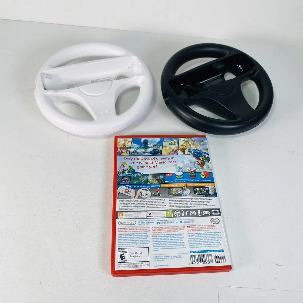 1. Absolutely love this Mario Kart 8 bundle! The game works flawlessly, even with minor scuffs, and the wheels add so much fun. The case and inserts are in great shape, just some light wear. Perfect for family races—tested and ready to play! Worth every penny for the complete set.