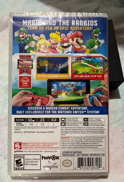 Embark on an unexpected journey with Mario, his friends, and some unpredictable Rabbids in "Mario + Rabbids Kingdom Battle" for the Nintendo Switch. A delightful blend of strategy and role-playing elements ensures that every move counts in this engaging experience. Published by Ubisoft and released in 2017, this game offers a fresh twist on the familiar Mushroom Kingdom with its E10+ rating, making it suitable for a broad audience. The game is region-free, ensuring that players across the globe can enjoy the adventure without any restrictions. With its unique mix of humor and challenging gameplay, "Mario + Rabbids Kingdom Battle" is a must-have for fans of the genre and series alike, providing hours of entertainment as you explore every nook and cranny of this vibrant game world.